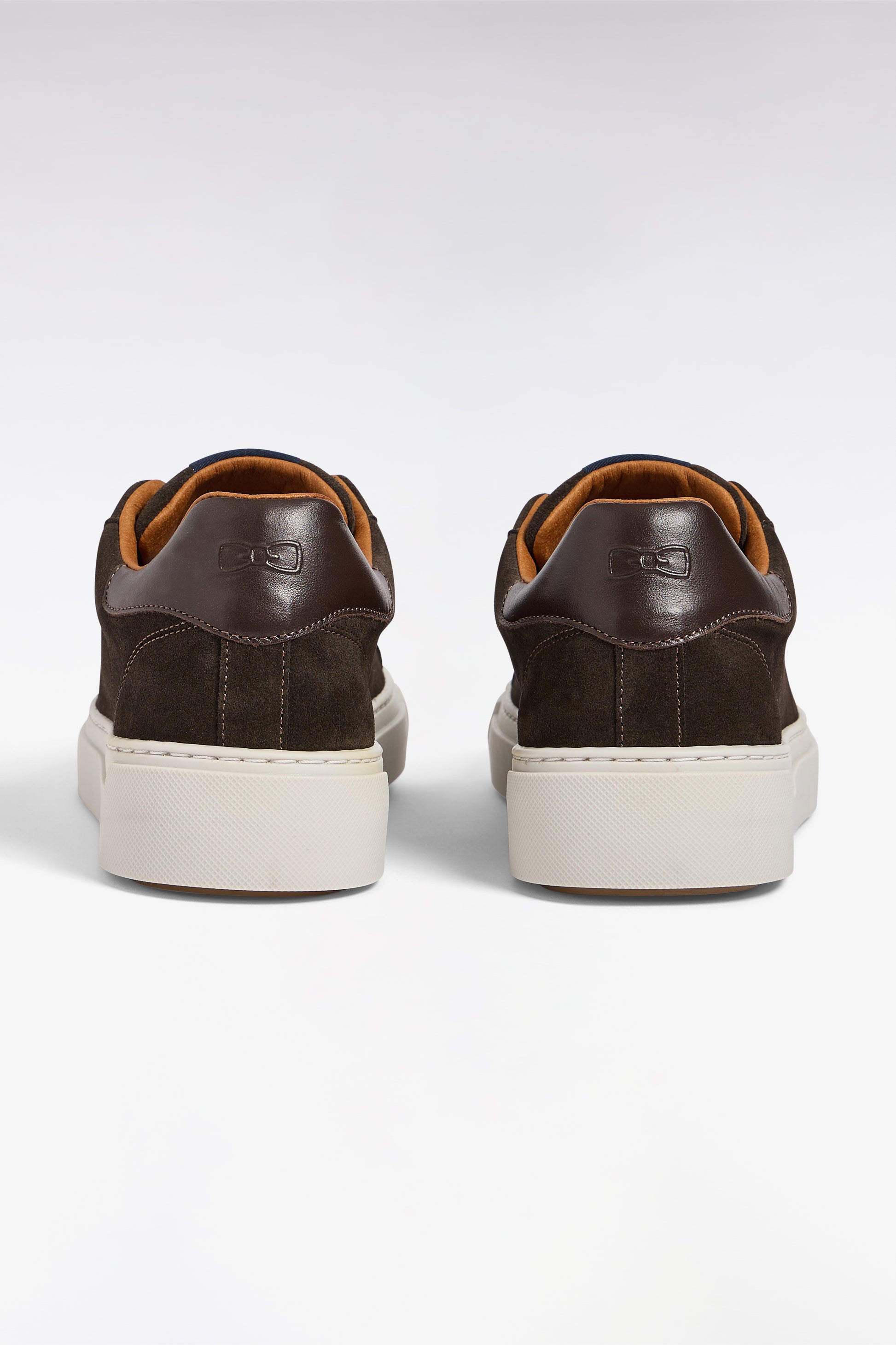 These navy, black or brown suede sneakers seduce with their clean lines and understated elegance. Their beige and white gum soles give them an authentic touch, contrasting with their embossed back tongue in smooth tone-on-tone leather. Ideal for everyday wear, these low-top sneakers complement a casual or dress wardrobe with equal ease.