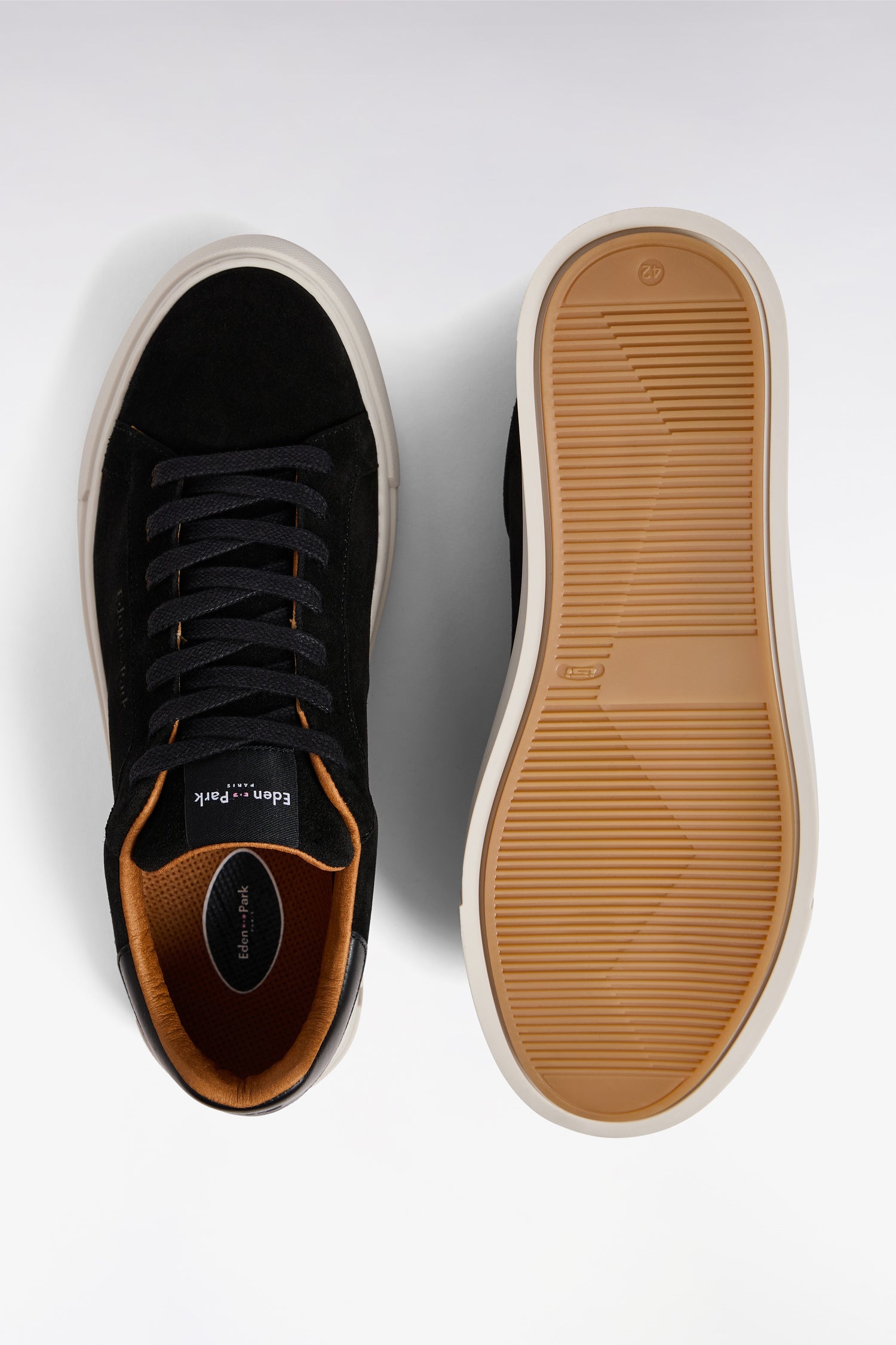 These navy, black or brown suede sneakers seduce with their clean lines and understated elegance. Their beige and white gum soles give them an authentic touch, contrasting with their embossed back tongue in smooth tone-on-tone leather. Ideal for everyday wear, these low-top sneakers complement a casual or dress wardrobe with equal ease.
