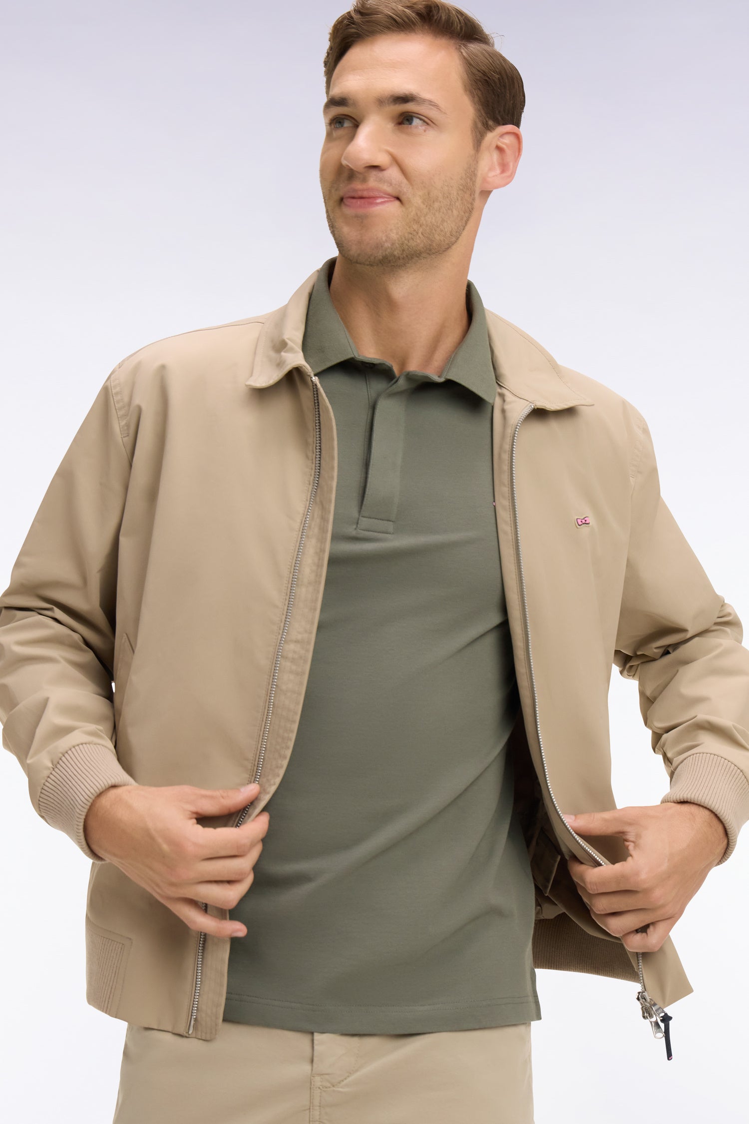 Notre blouson en nylon séduit par sa sobriété élégante et son confort à l'épreuve du quotidien. Sa doublure en nylon à rayures rugby affirme l’identité sport chic de notre Maison, tandis que son col classique apporte une touche intemporelle et polyvalente à cet essentiel masculin. Conçu pour la mi-saison, ce blouson s’impose comme un pilier du vestiaire de l'homme moderne, à la fois pratique et structuré grâce à ses poches fonctionnelles et ses finitions soignées. Disponible en beige ou en marine, il se prête aussi bien aux looks décontractés qu’aux tenues plus habillées.
