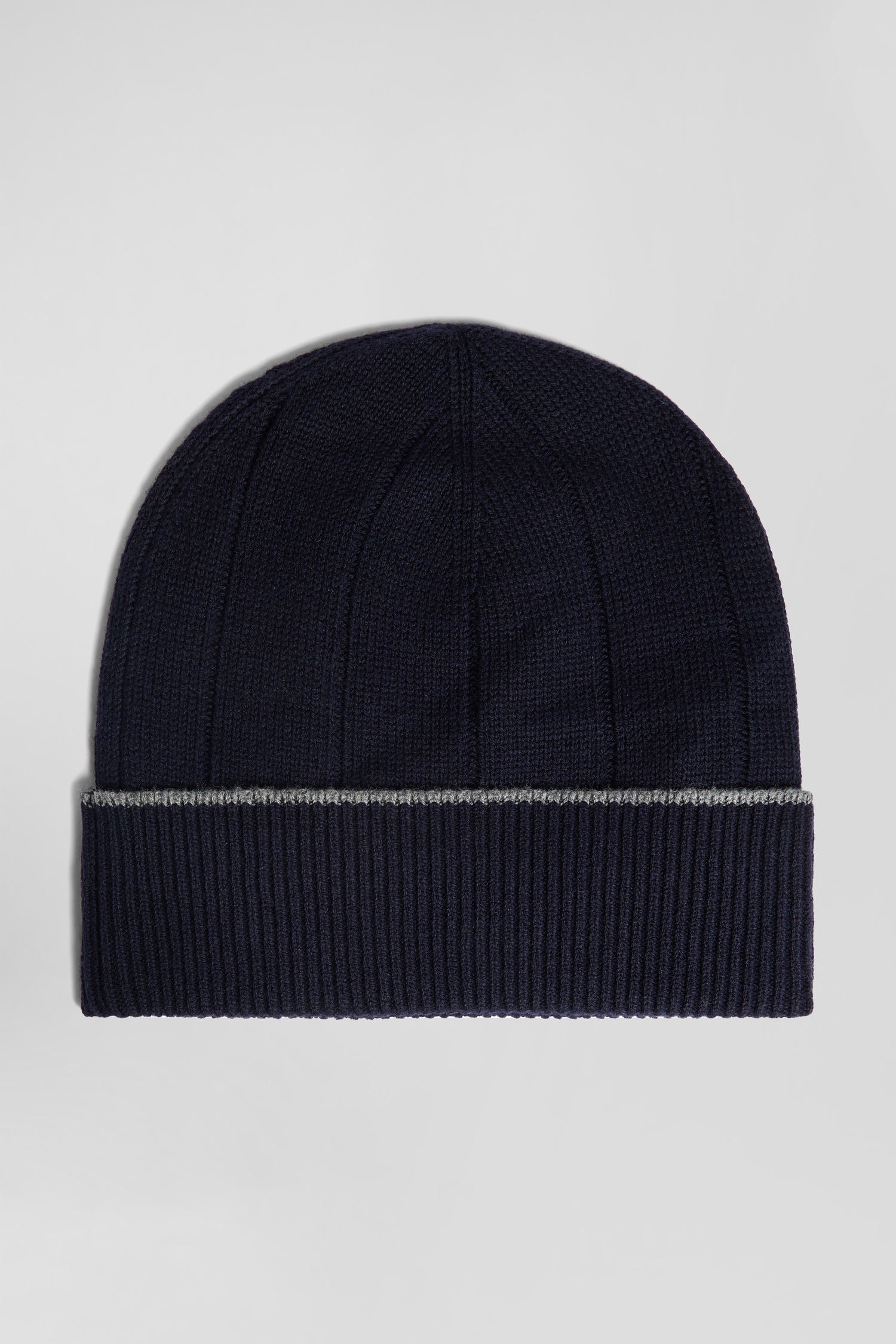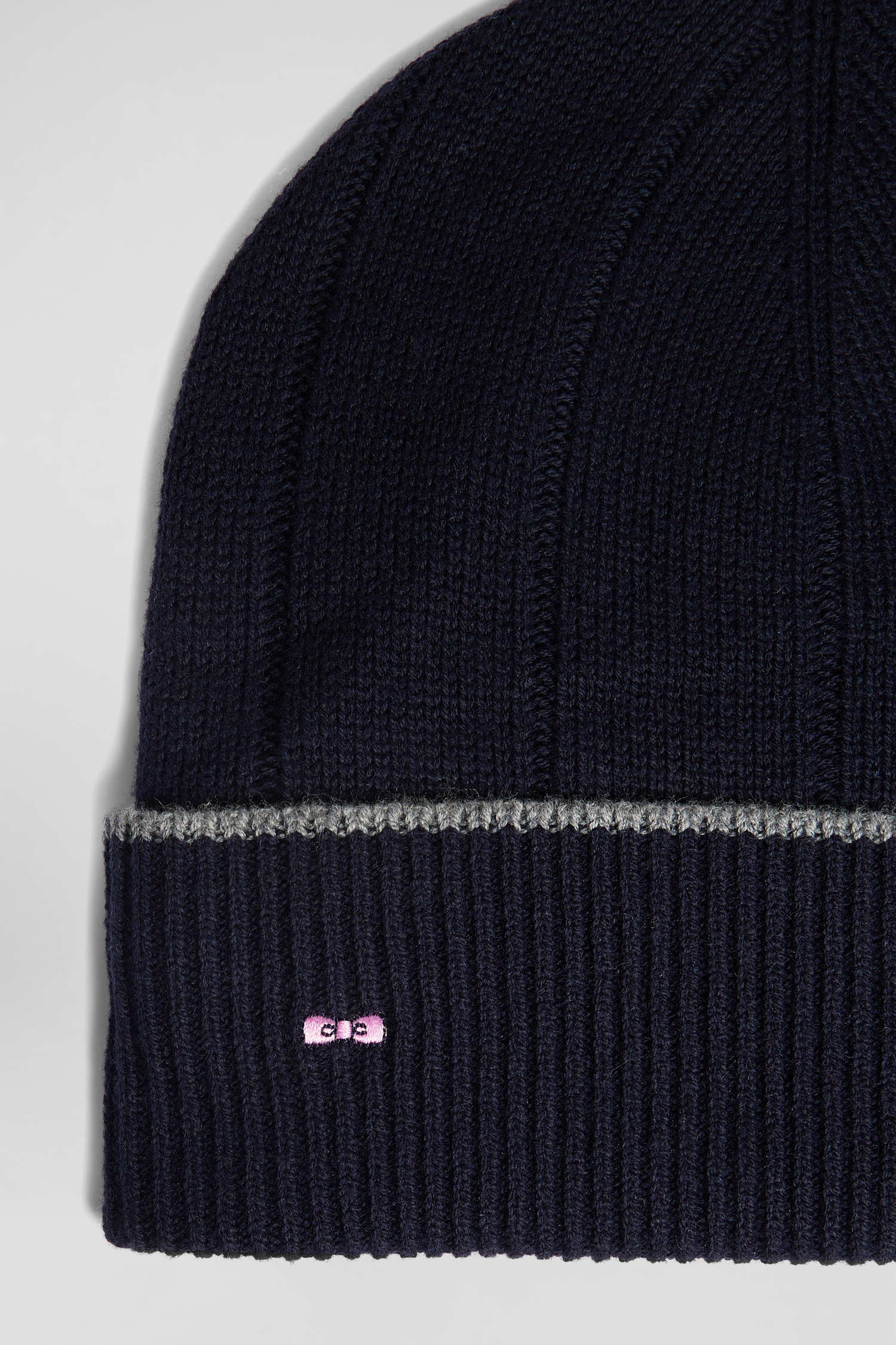 Navy blue cotton and cashmere beanie with contrasting trim