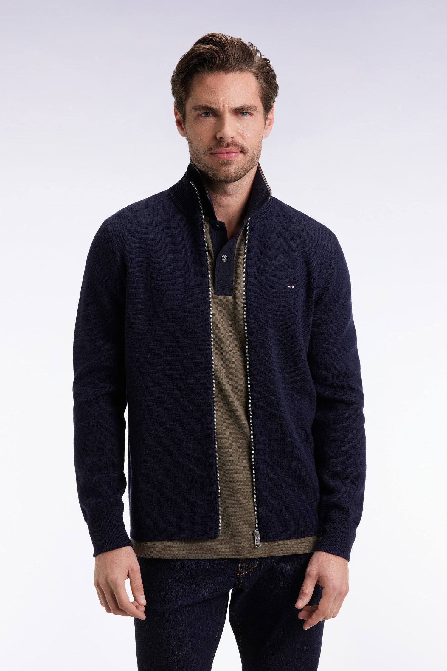 Designed to combine warmth and sporty chic, this luxurious merino knit cardigan features a high zip collar and meticulous finishing touches. Merino wool, renowned for its softness and hypoallergenic, thermoregulating properties, gives this model its distinctive character. Pink bowtie embroidery adds a discreet Eden Park signature.