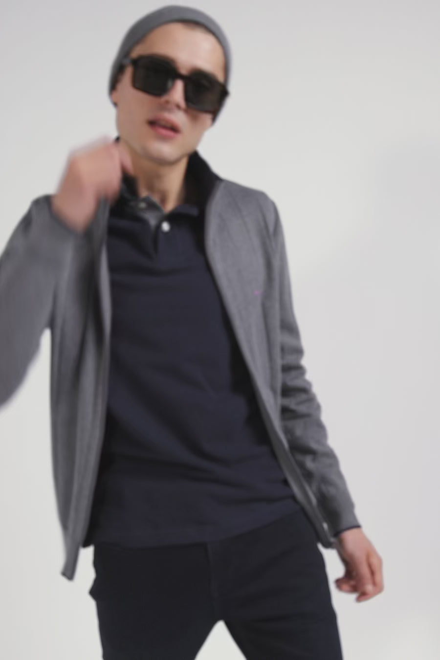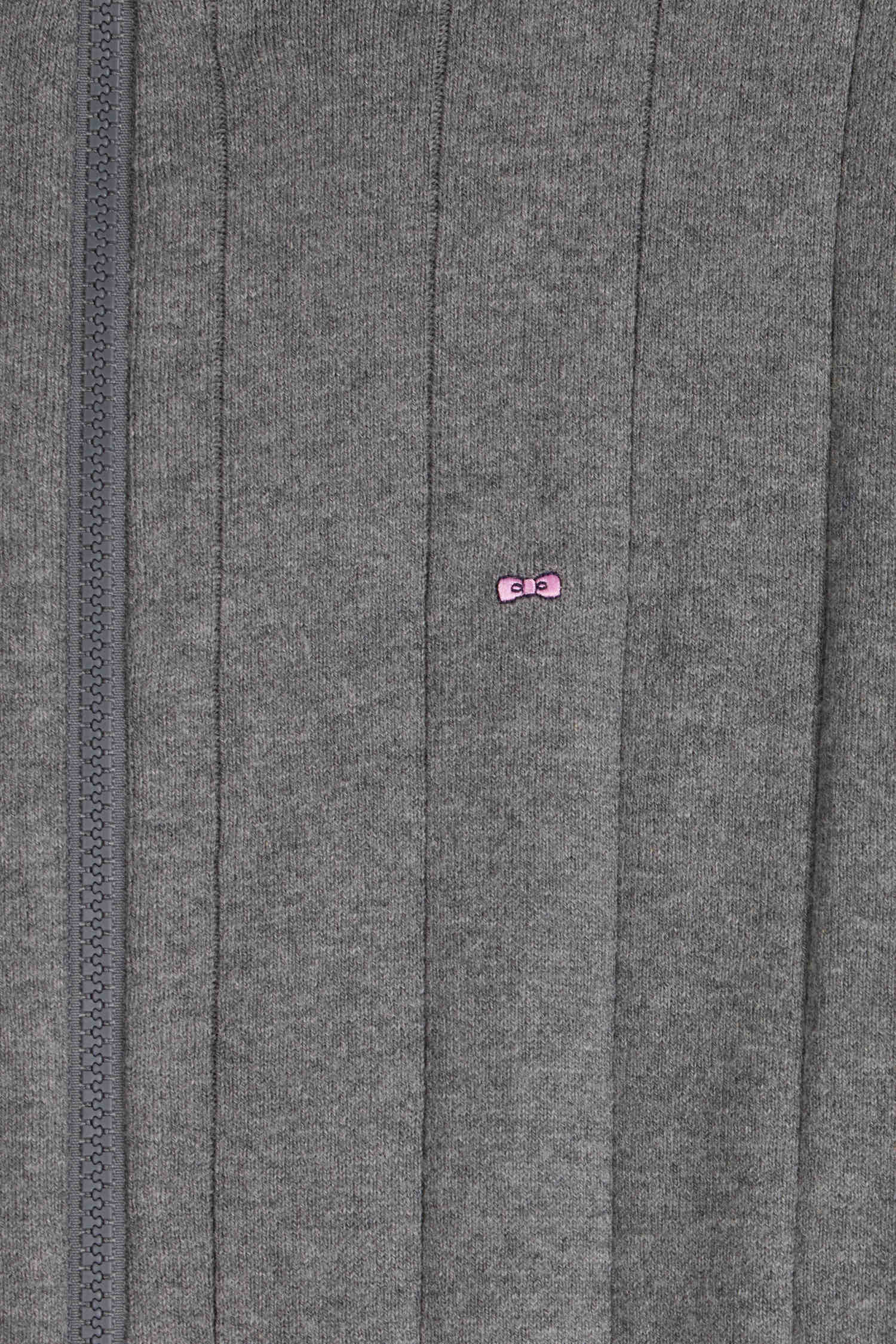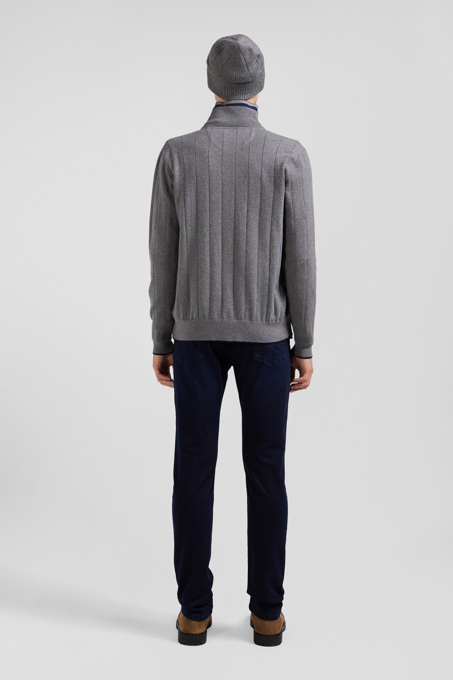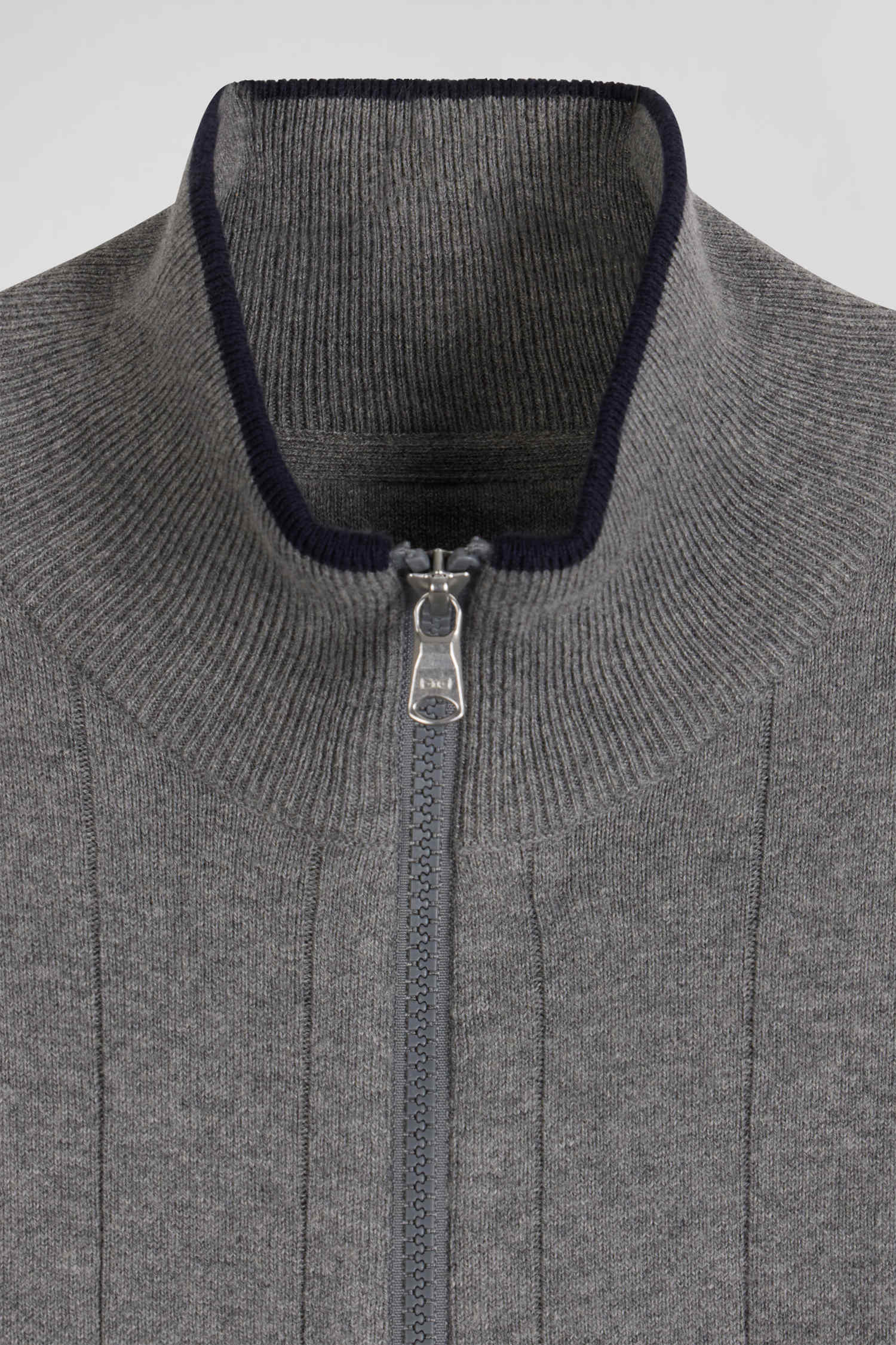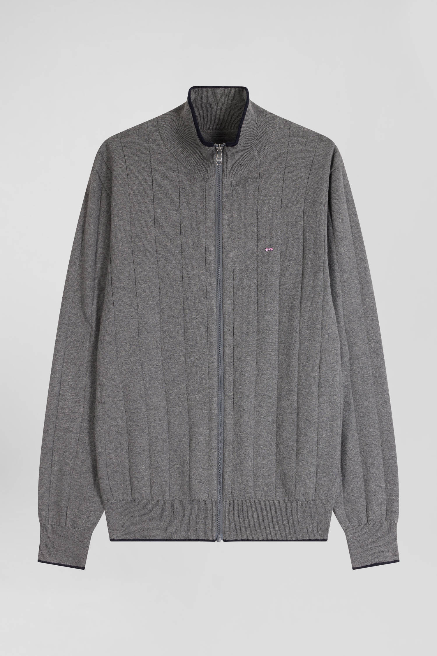Regular grey cotton and cashmere zipped cardigan with vertical stripes