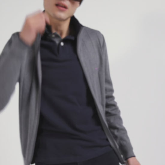 This trucker-neck zipped cardigan is crafted from a luxurious blend of cotton and cashmere, offering exceptional comfort and unrivalled softness. Its design is enhanced by contrasting piping, adding a touch of understated elegance. The flat rib knit pays homage to our iconic rugby hooped stripe, reinterpreted here vertically for a unique style. A knitted ribbon adorns the inside of the collar, while the jersey half-moon underscores our Maison's attention to detail. Available in timeless autumn-winter colors, this cardigan is a must-have this season.