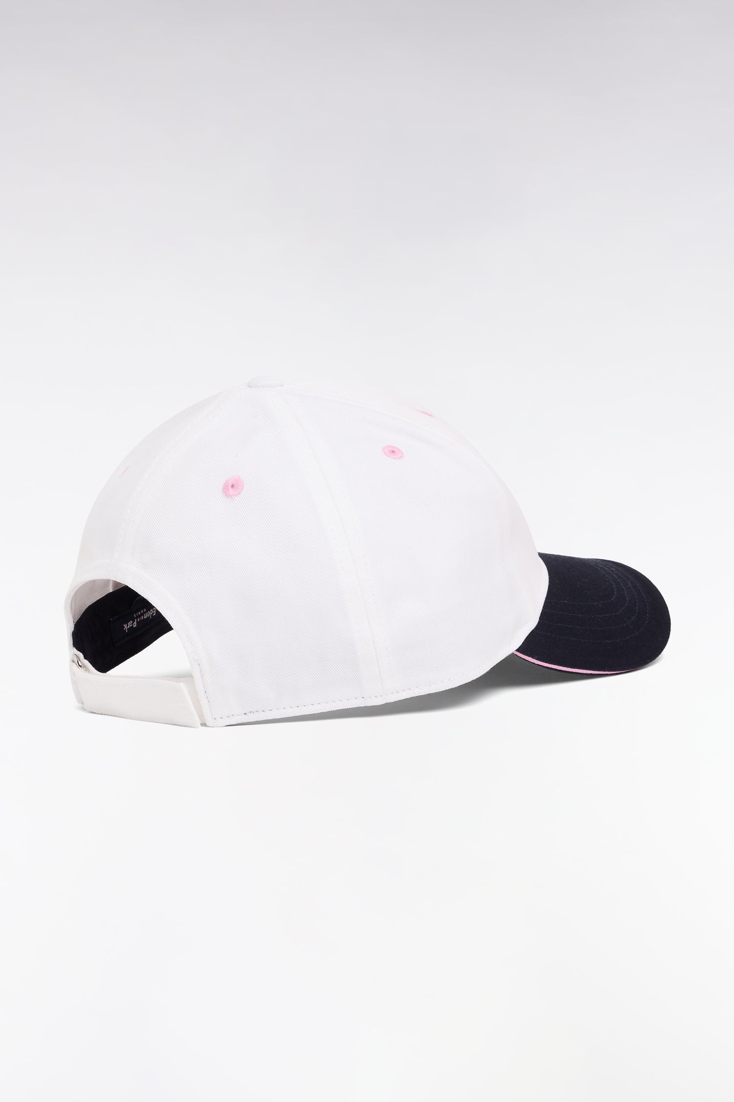 Emblématique de la silhouette French Flair de notre Maison de mode, la casquette en twill est ici déclinée dans un style bicolore blanc à visière marine et rebrodée de notre emblème. Œillets, passepoil et nœud papillon rose font le charme et l'originalité de cette casquette. Un accessoire qui ne reste jamais sur le banc de touche lorsqu'il s'agit de rentrer dans le match du style.