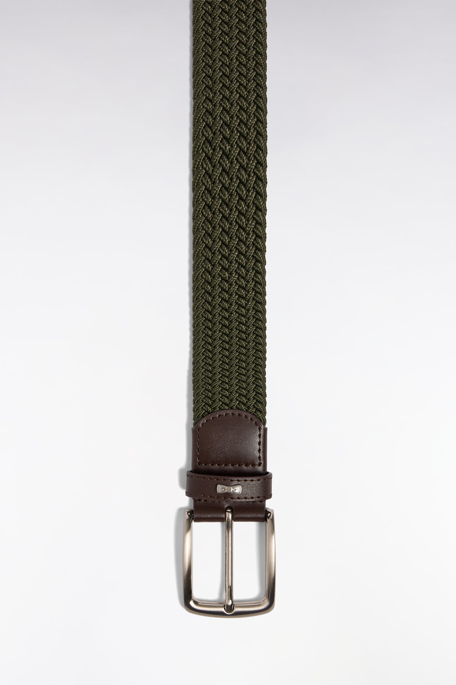 Combining suppleness and support, this elasticated men's belt is distinguished by its plain weave and contrasting or tone-on-tone smooth leather finishes, depending on the color selected. Featuring a shiny silver-finish buckle, this belt combines comfort and elegance. A functional accessory available in 2 sizes and 3 colors to suit every figure.