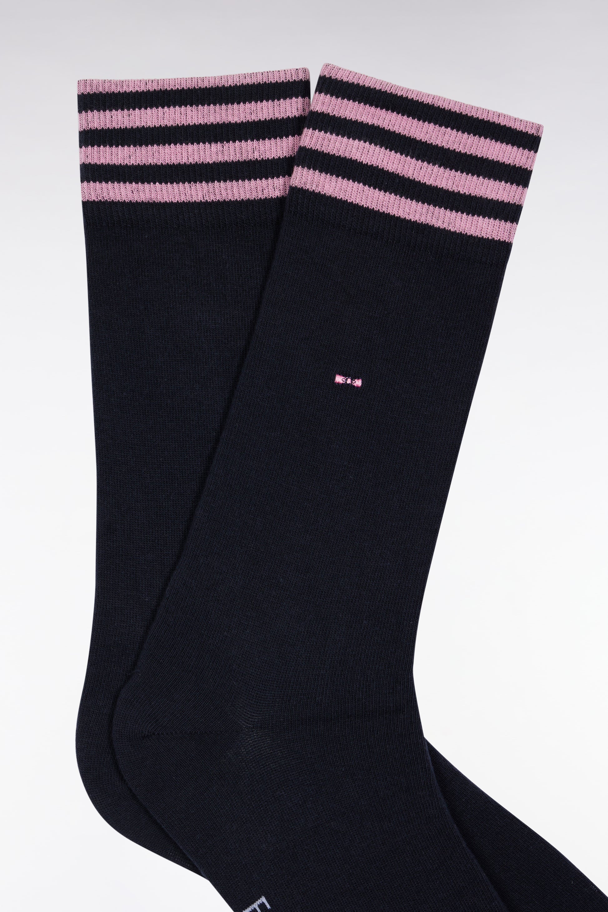 Graphic without overdoing it, these men's socks with contrasting stripes on the edges play up the sporty-chic detail. Comfortable and soft, the stretch knit follows your movements all day long. A model available in all our seasonal colors, to perfect your silhouette down to the smallest detail.
