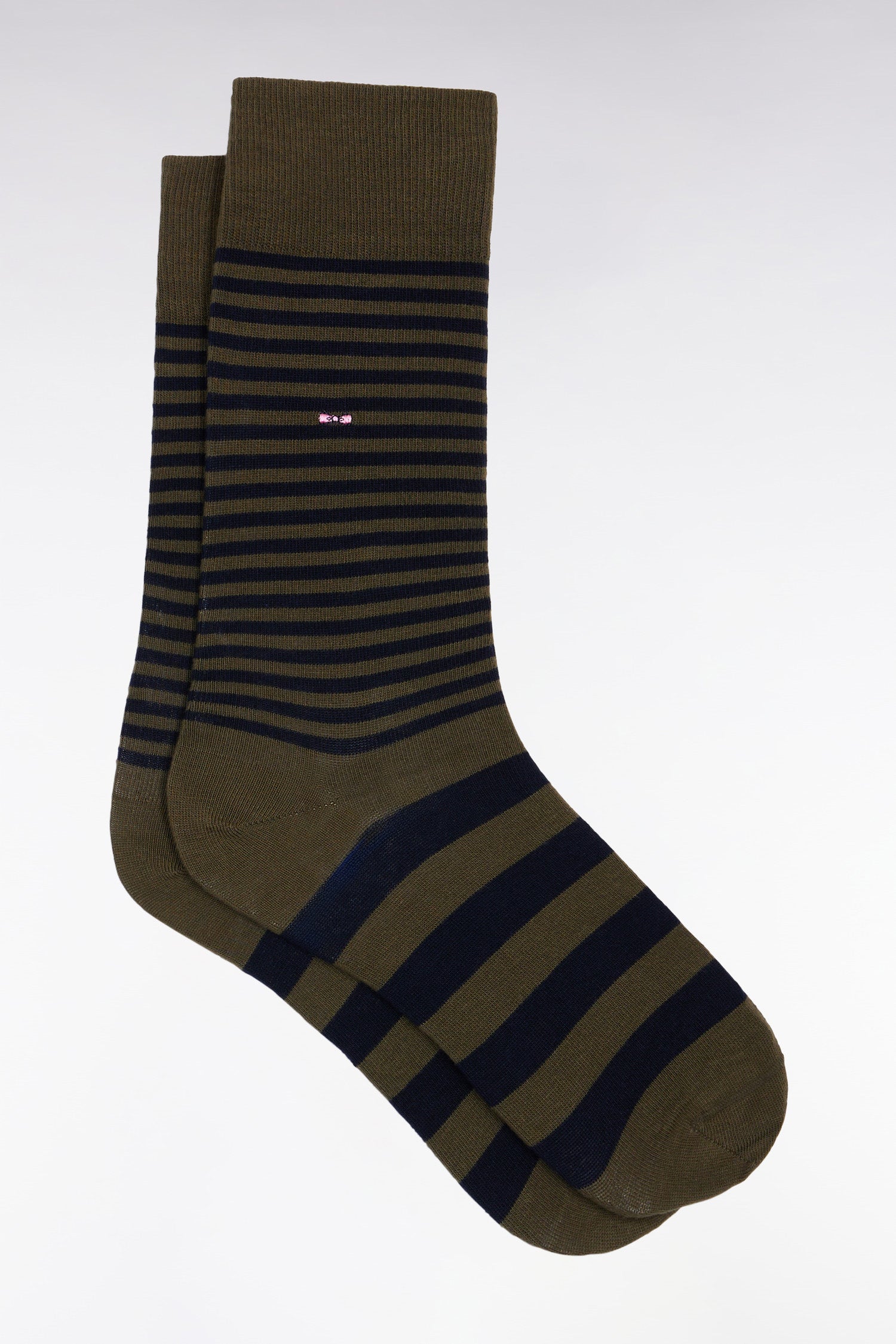 Rugby stripes and a choice of colors: these striped cotton blend socks add a graphic touch to your wardrobe. A comfortable model, perfect for your everyday silhouettes.