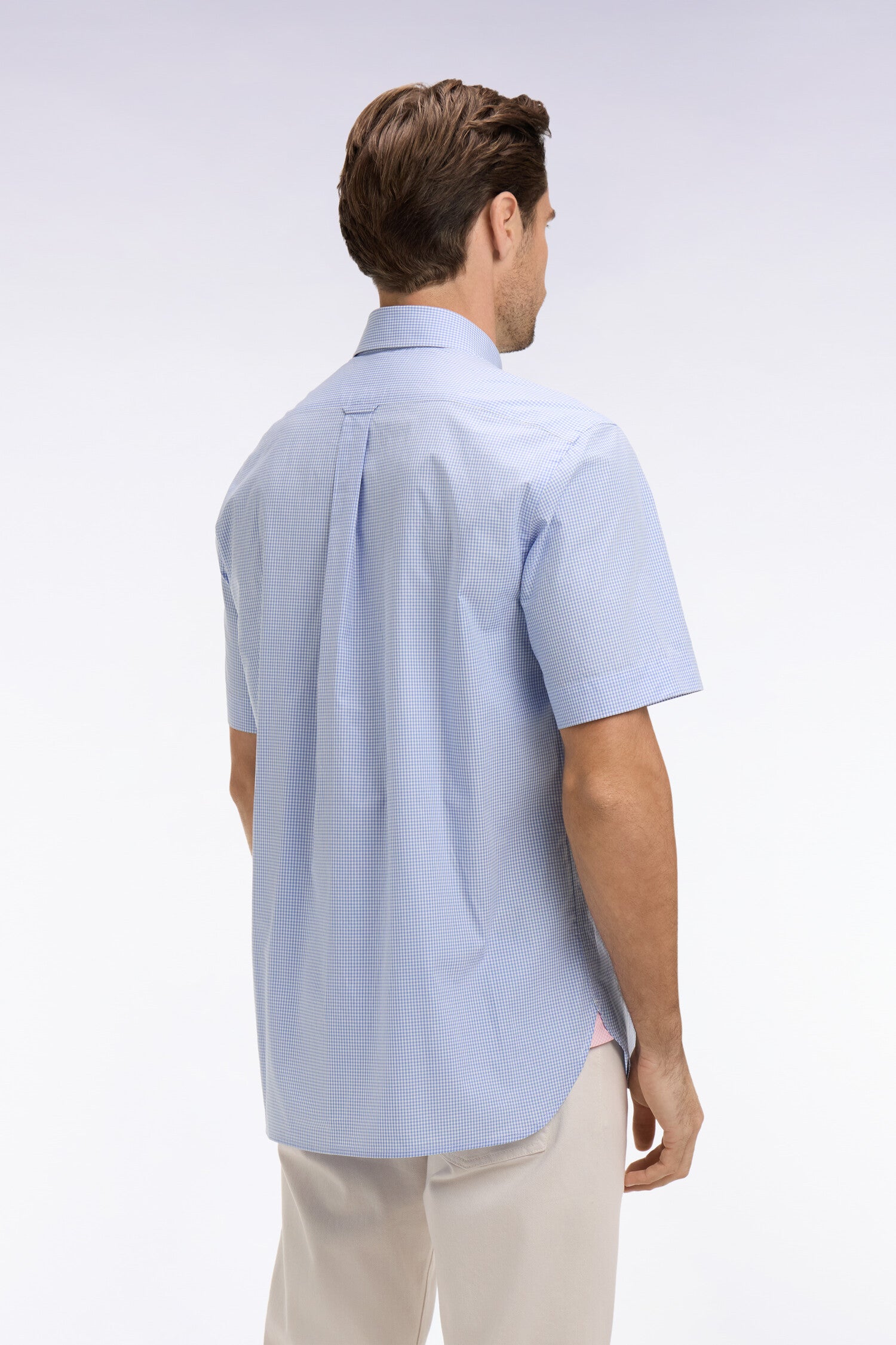 Chemise à manches courtes en coton à carreaux Vichy bleu ciel