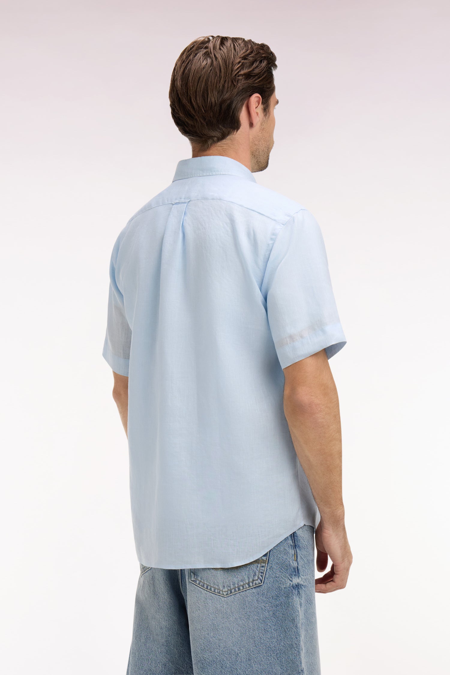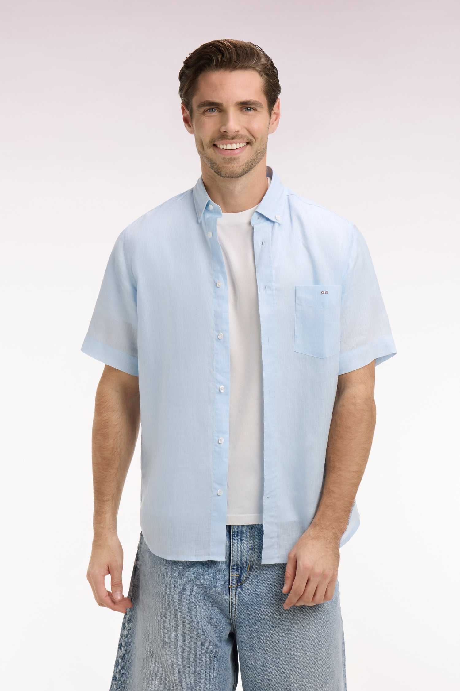 Cette chemise à manches courtes en lin pur s’impose comme l’incontournable de la saison été. Légère, respirante et naturellement texturée, cette chemise masculine offre un confort incomparable lorsque les températures s’élèvent. Sa coupe droite à pans arrondis et son col à pointes libres lui confèrent une allure décontractée mais toujours soignée, idéale pour passer avec aisance de la ville aux vacances. Déclinée dans une large palette de coloris, des tons naturels aux nuances plus lumineuses, cet indispensable se coordonne aisément à un chino léger comme à un short en toile. Ses finitions discrètes et sa matière noble, font de cette chemise en lin le pilier d'un vestiaire estival, frais et élégant.