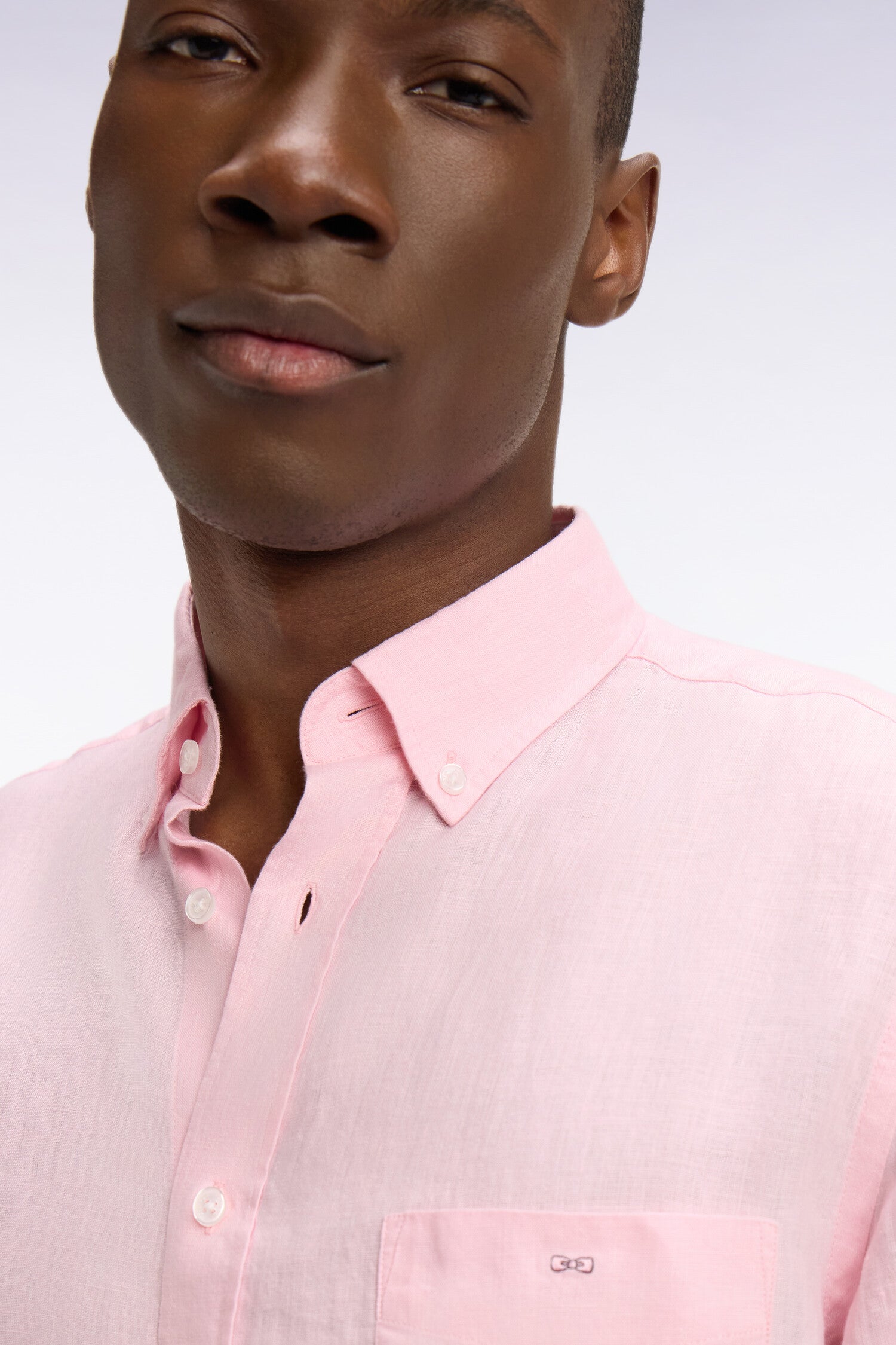 Cette chemise à manches courtes en lin pur s’impose comme un incontournable de la saison estivale. Naturellement respirante, légère et élégante, elle offre un confort incomparable lorsque les températures montent. Sa coupe regular à bas arrondi et son col à pointes boutonnées assurent une silhouette nette et décontractée. Dotée d’une poche poitrine ornée de notre iconique broderie nœud papillon, elle affiche un style épuré, fidèle à l’ADN sport chic de la Maison. Déclinée en une grande palette de coloris, elle se coordonne facilement à un chino clair comme à un bermuda. Un essentiel polyvalent, pensé pour accompagner aussi bien vos journées en ville que vos escapades estivales. Cette chemise se décline dans sa version manches courtes.