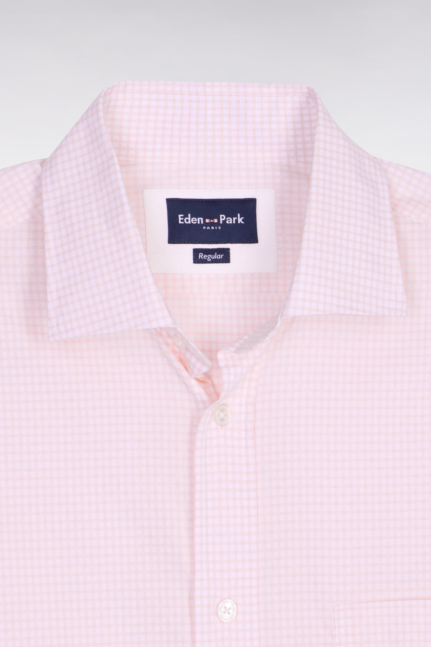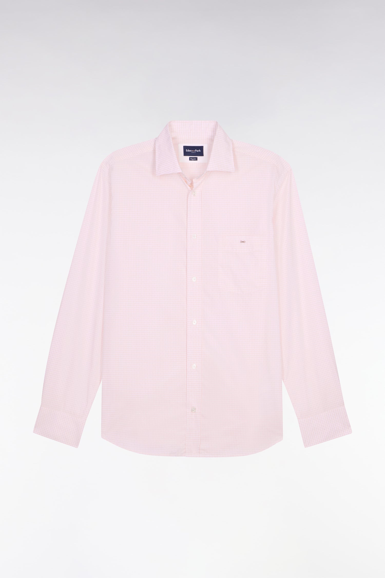 This dobby cotton shirt is distinguished by its subtle weave which brings relief to its check patterns available in sky or pink colors. Its regular cut ensures a comfortable and impeccable silhouette in all circumstances. Featuring a classic collar, a chest pocket and neat finishes, it goes easily with chinos or jeans for a chic and relaxed look. A men's wardrobe essential to adopt without delay.