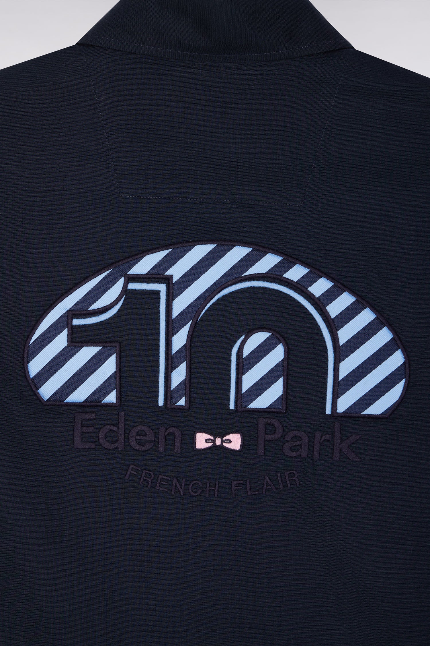 Made from structured pinpoint cotton, this men's shirt is a subtle tribute to rugby. The collar and cuffs are enlivened by tie fabric details, while a number 10 embroidered on the back confirms its place in a passionate wardrobe, recalling Franck Mesnel's historic jersey number. A strong piece, to be worn on its own or layered over a plain T-shirt. This straight-cut men's shirt is available in 3 colors: white, navy blue or black, to match your favorites as well as our fashion suggestions for the season.