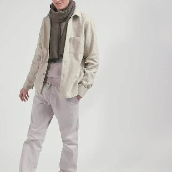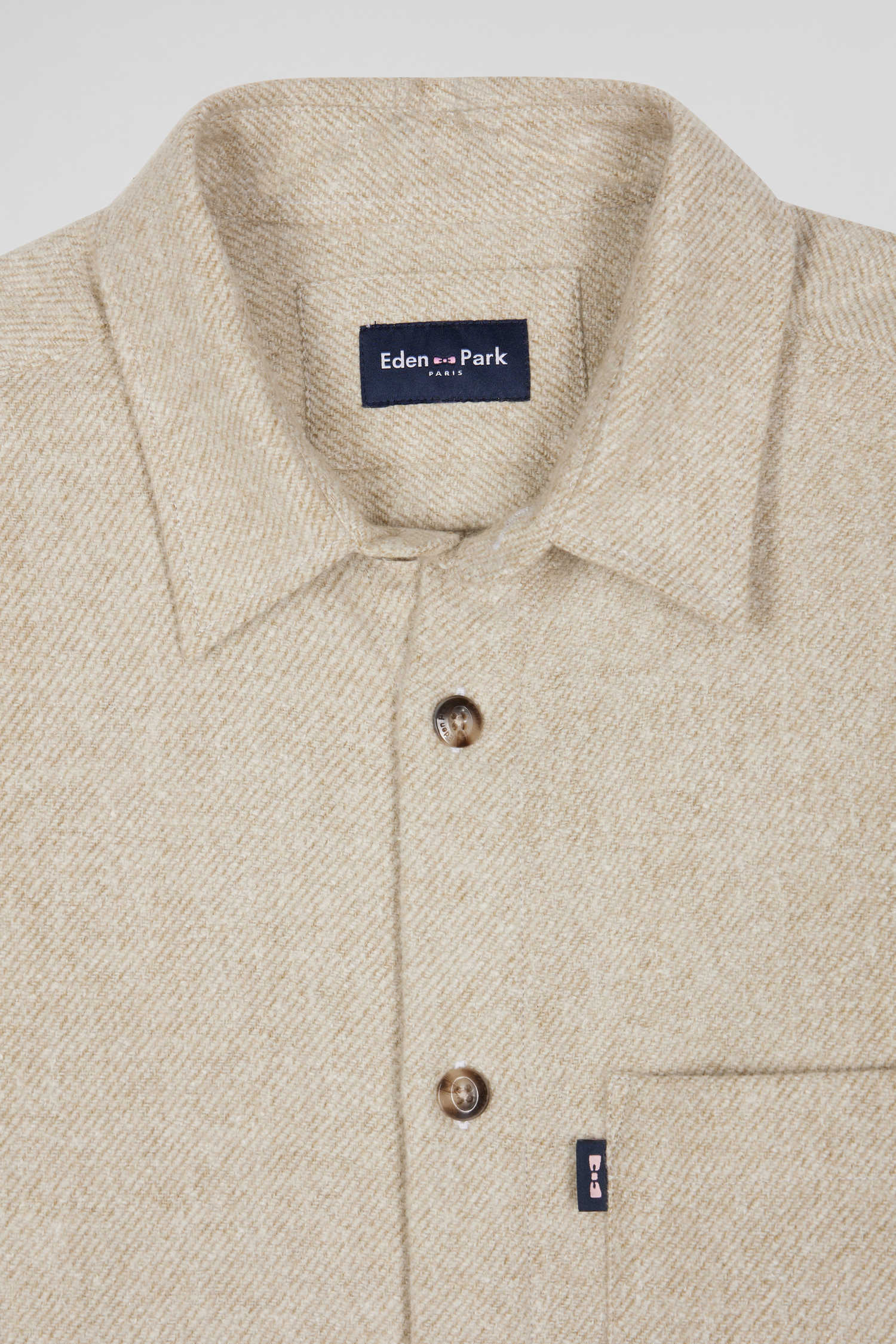 Our Japanese fabric overshirt is made from a cotton blend and available in timeless shades of beige, brown or navy. This slightly retro piece boasts a straight cut perfectly suited to your layering games. Its unique look is complemented by a patch pocket, subtly enhanced by Eden Park's signature take on our iconic pink bow tie. This men's overshirt combines sophistication and comfort, and goes equally well with jeans or chino pants.