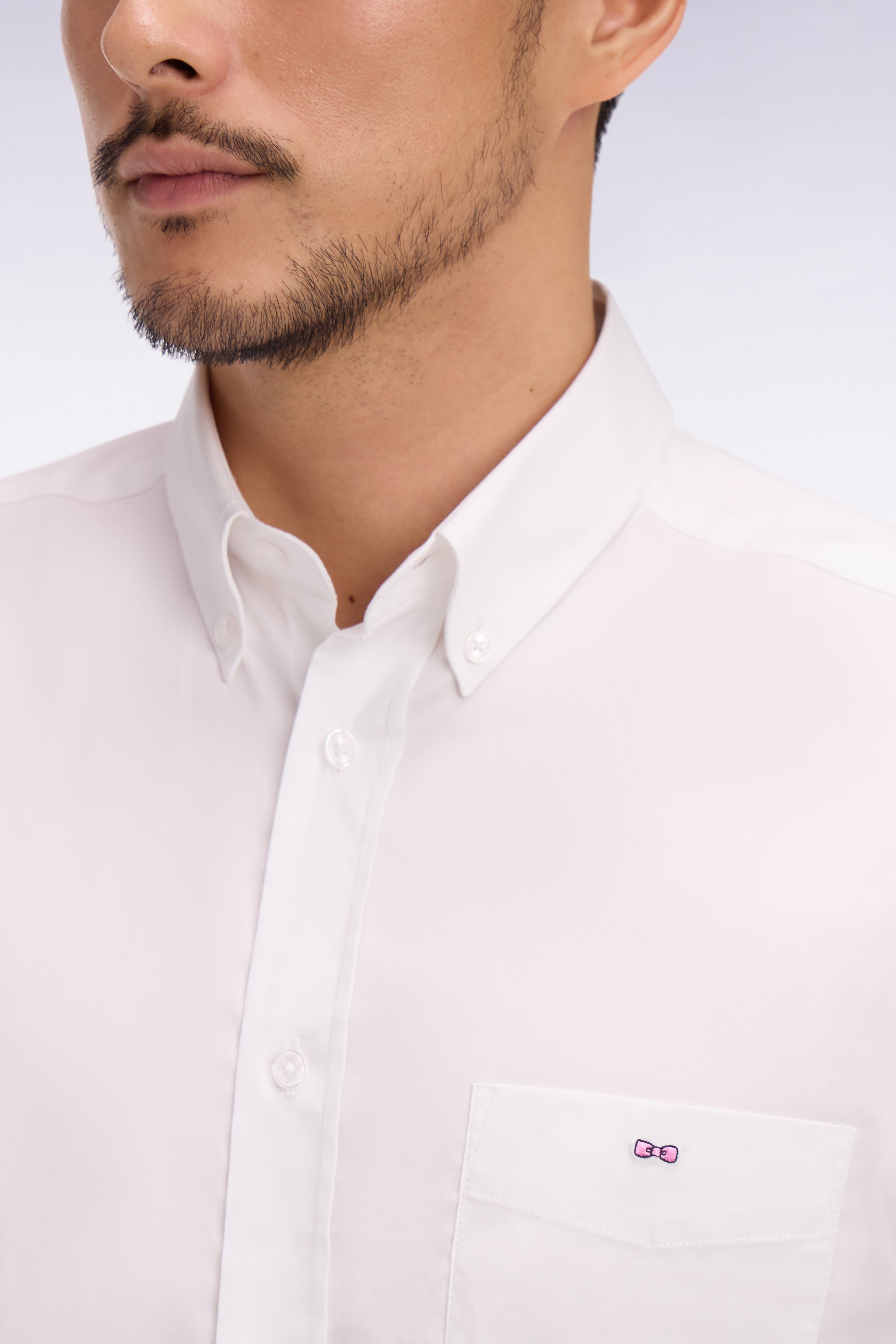 Essentiel du vestiaire masculin Eden Park, cette chemise unie adopte une coupe regular qui conjugue tenue et confort au quotidien. Déclinée dans plusieurs coloris elle sera parfaite pour accompagner un chino beige, un jean comme un pantalon de costume marine. Le col à pointes boutonnées, la broderie sur sa poche poitrine et les boutons inspirés de l’ovalie soulignent le soin des finitions, fidèles au style sport chic de la Maison. Une chemise versatile, pensée pour suivre naturellement du bureau à l’après-match.