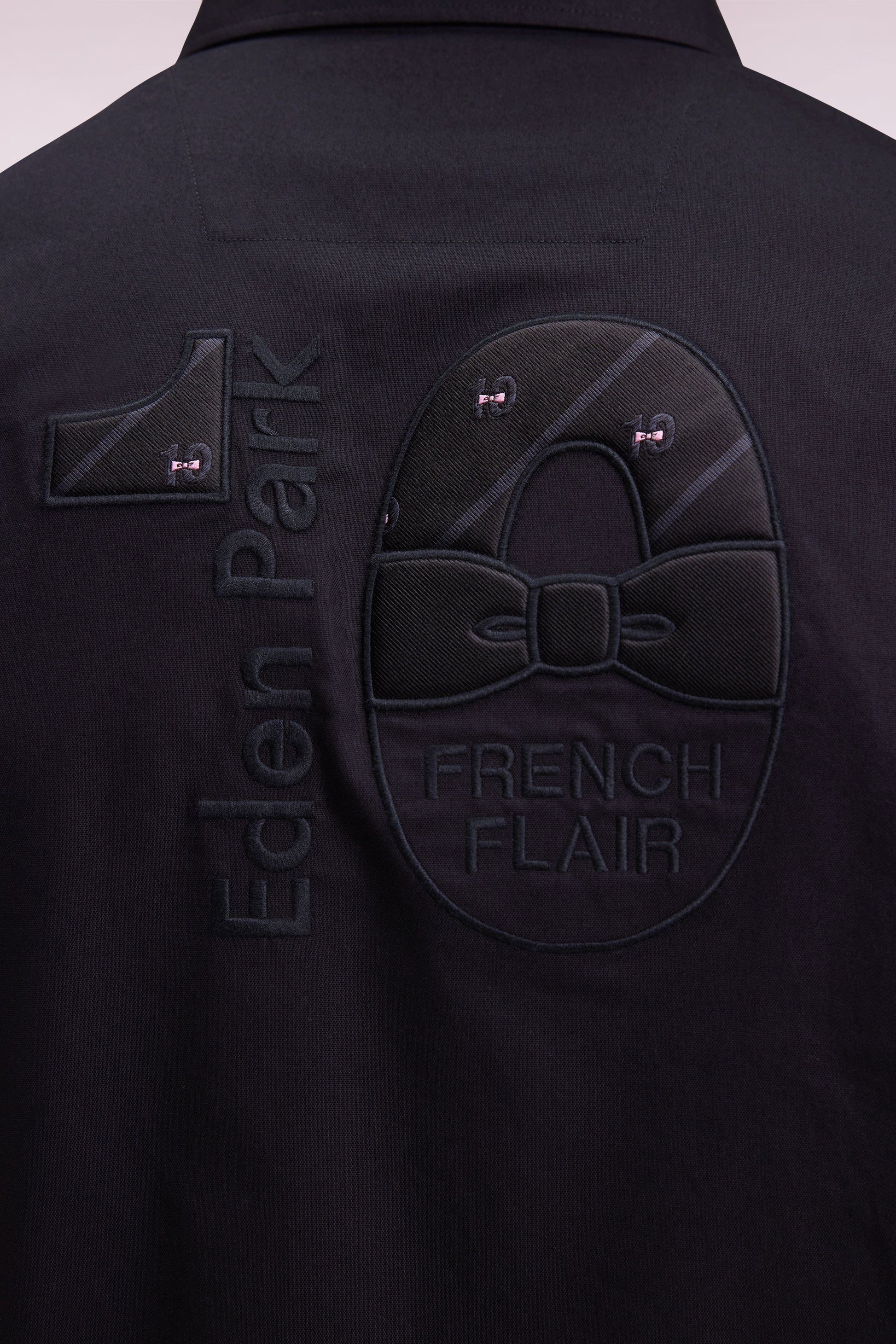 The sport-chic style that has become emblematic of Eden Park finds a new expression here in this straight-cut cotton shirt. Inspired by sportswear, it features elegant detailing with a button-down collar and contrasting pink-thread bowtie embroidery on the chest. On the back, two embroidered bows add an unexpected touch: one is discreetly embellished with a printed tie fabric, a refined nod to the Maison universe. Designed to combine urban allure with everyday comfort, this shirt is distinguished by its meticulous finishing and singular signature. It embodies both the understated elegance and assumed originality that are Eden Park's hallmark.