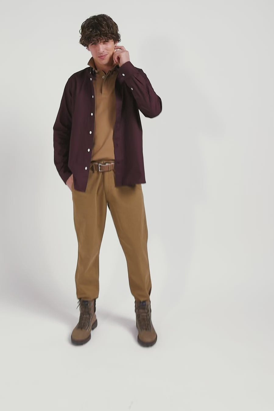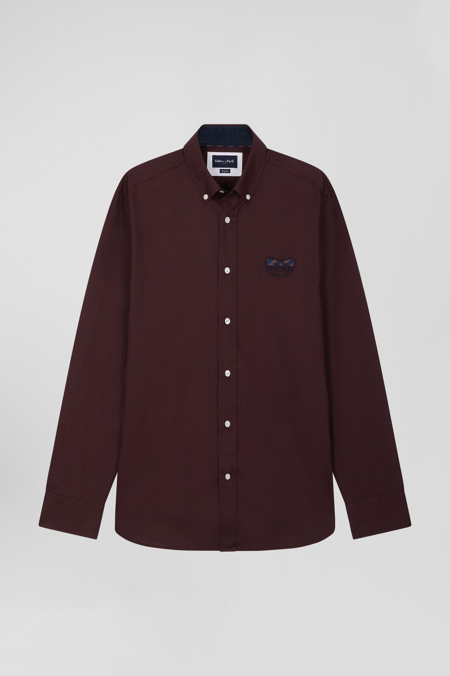 Regular burgundy oxford cotton shirt with striped bow tie detail