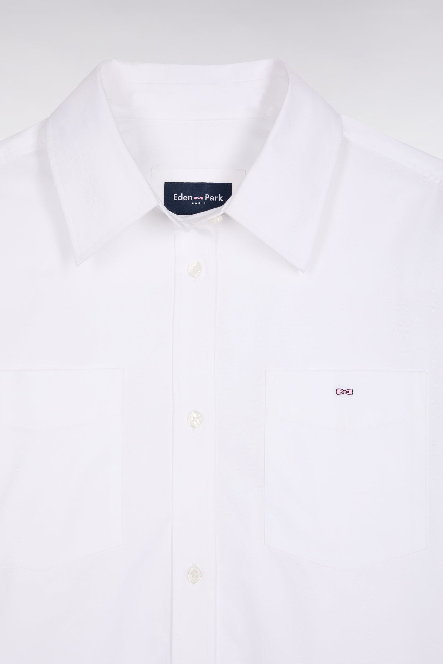 - Embroidered bow tie emblem