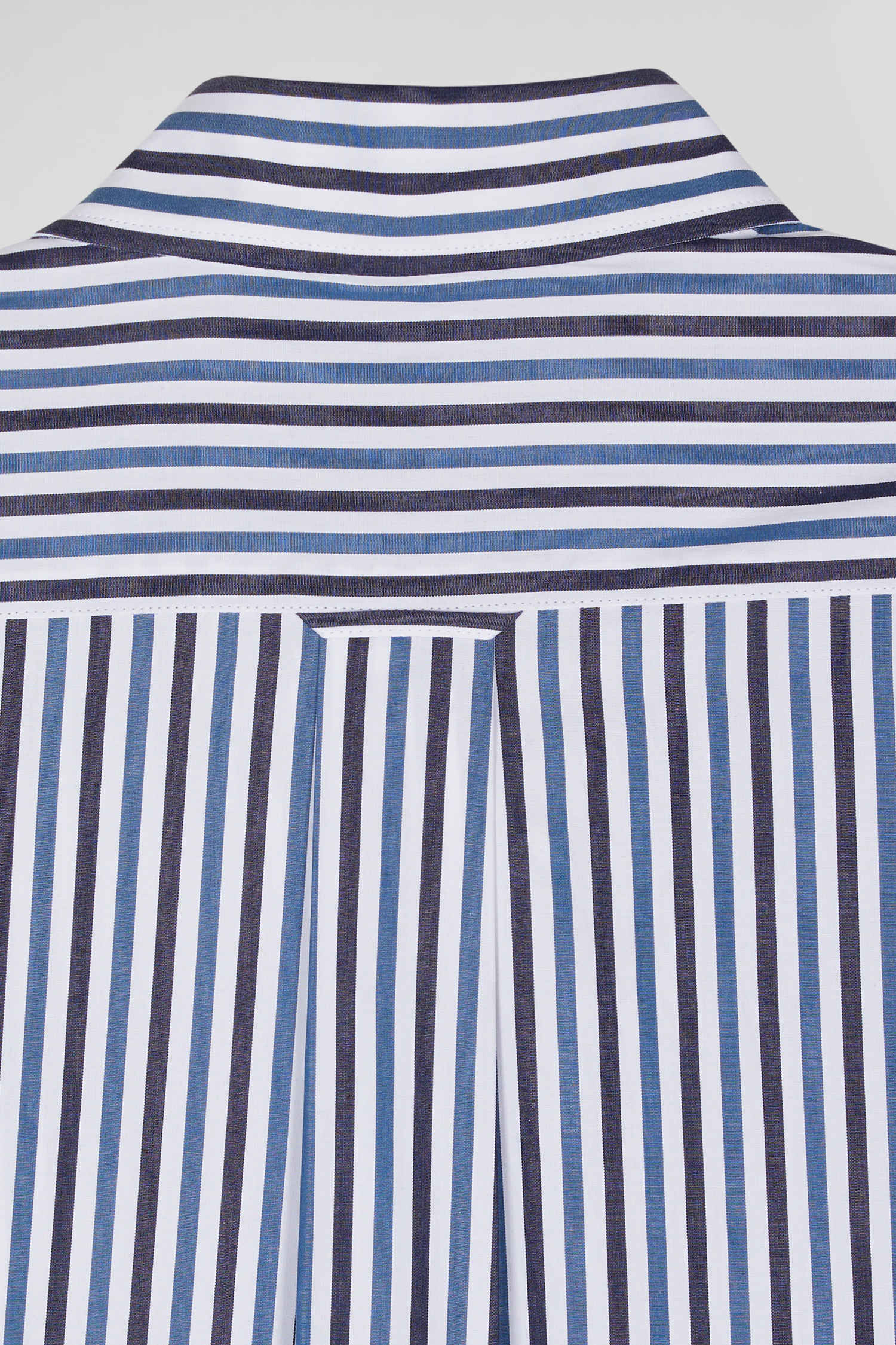 Regular dark blue striped cotton poplin shirt