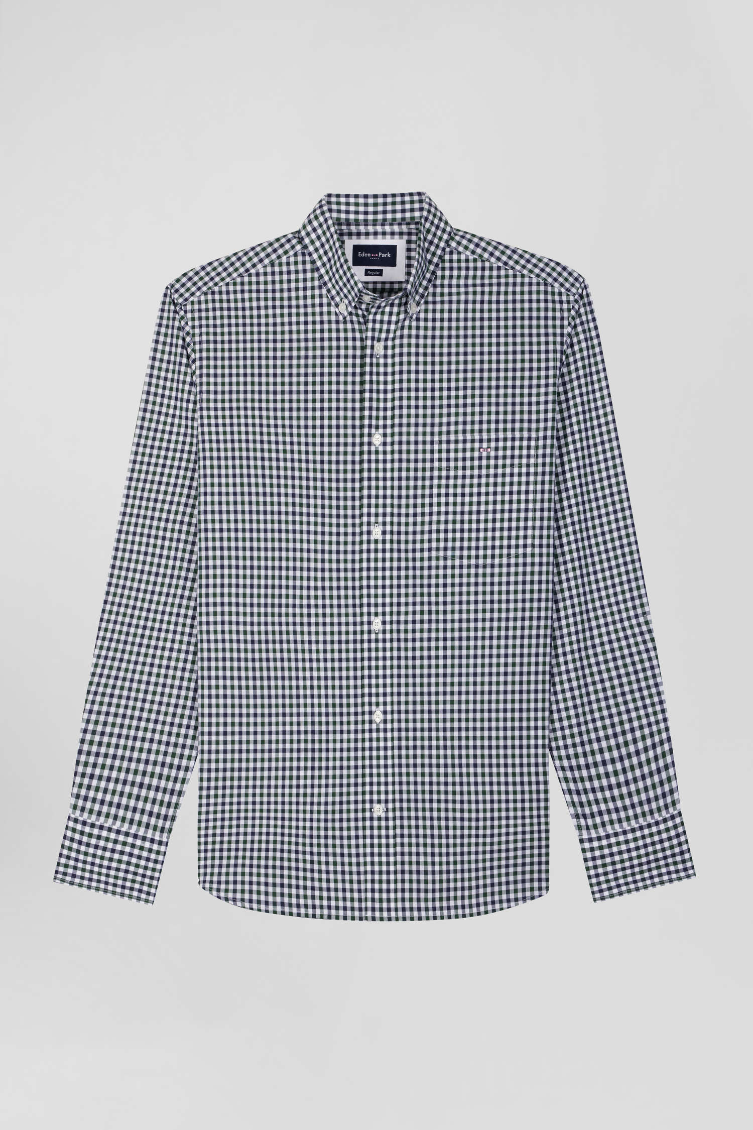 Regular green and white checked cotton poplin shirt