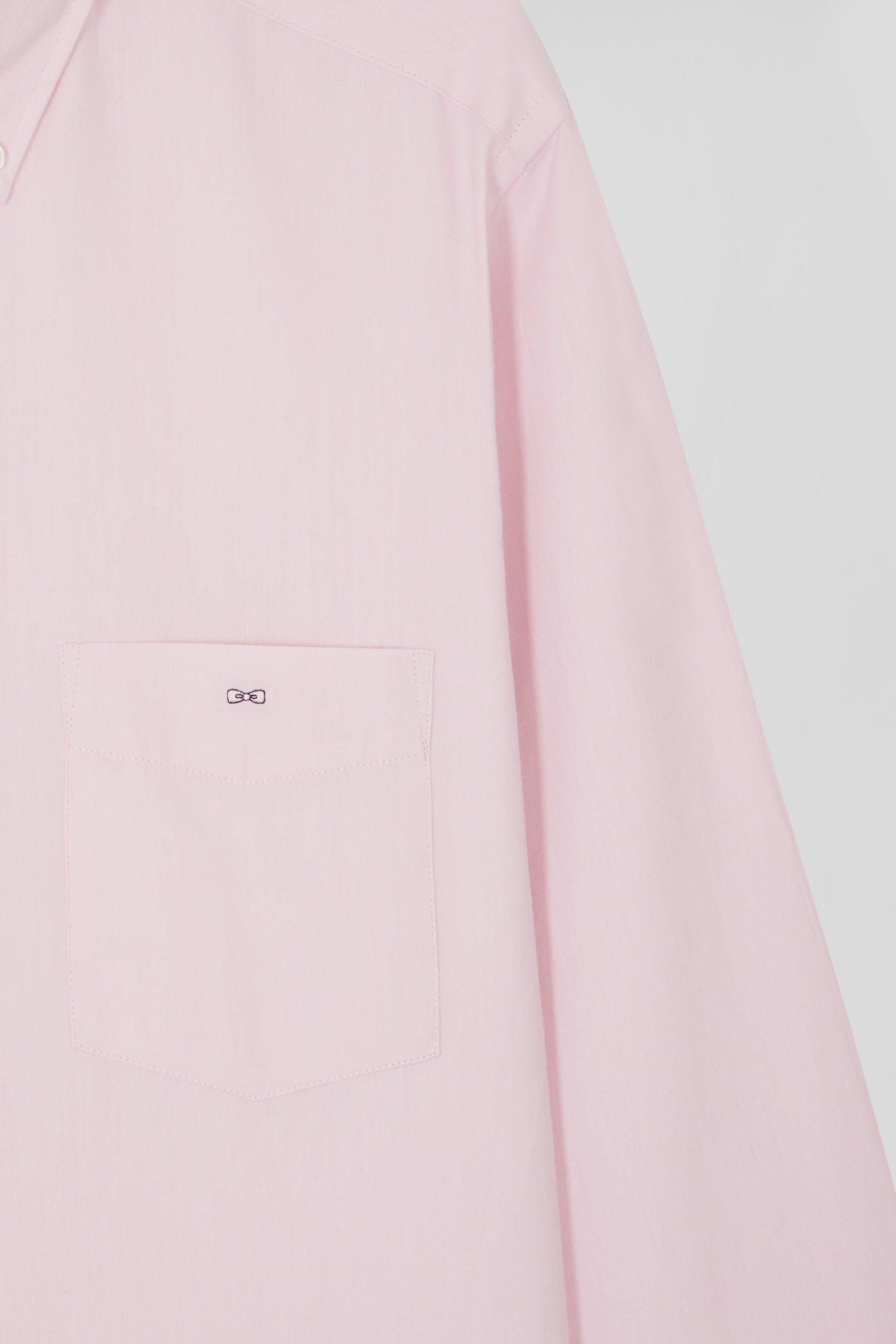 This plain cotton twill shirt features a button-down collar, a straight Regular cut and a classic button placket, combining sobriety and elegance. Its chest pocket embroidered with our signature bow tie adds a practical touch, while its timeless colors revisit the classic wardrobe.