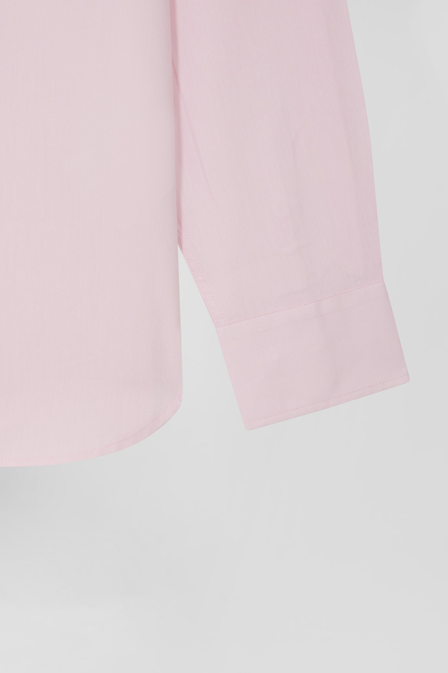 Regular plain pink cotton twill shirt with button-down collar