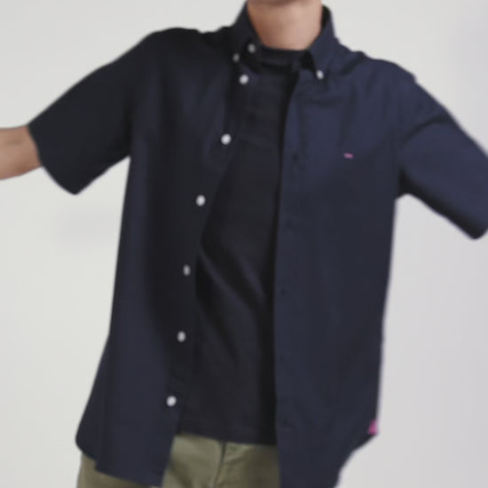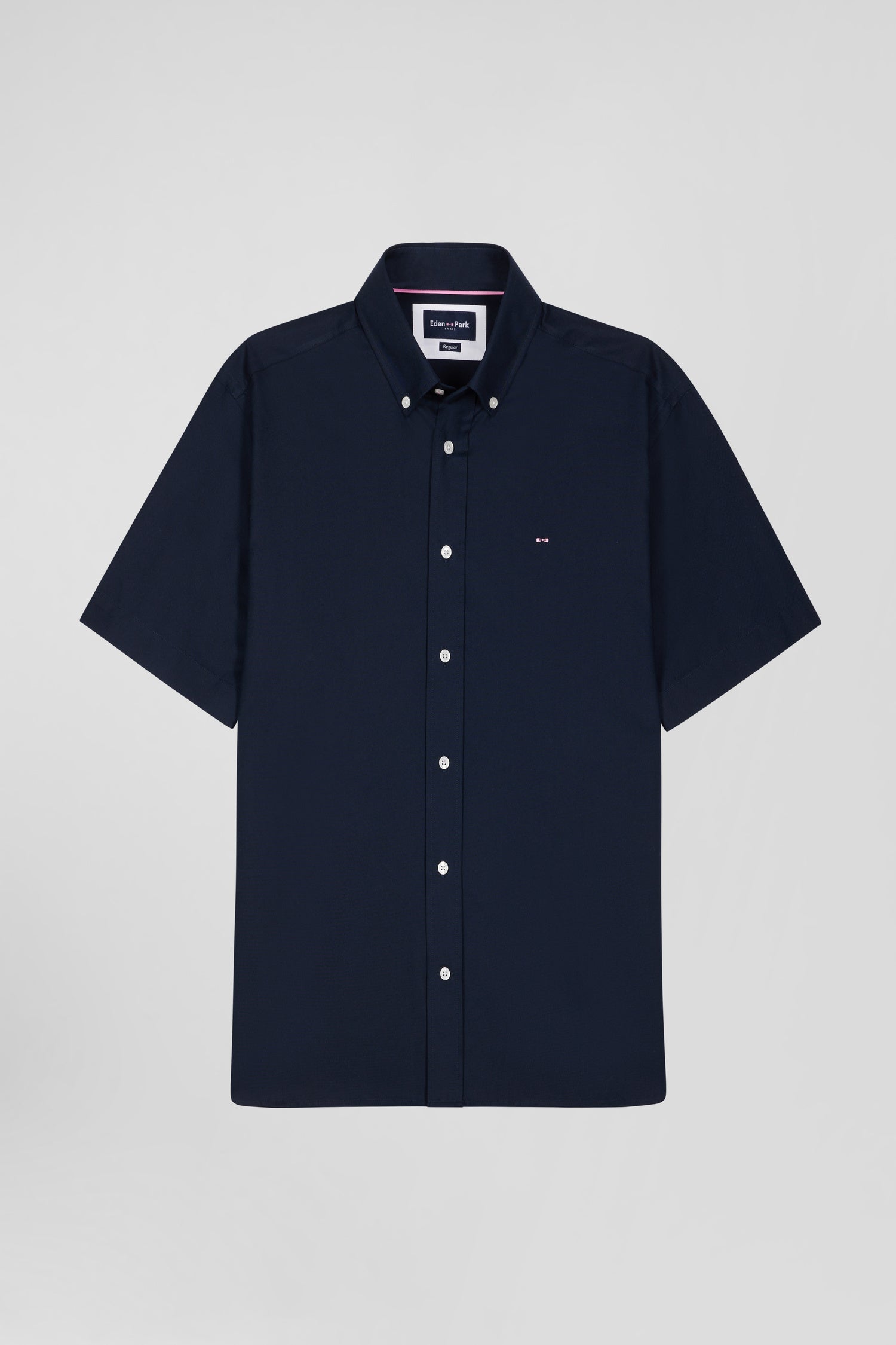 Regular navy blue cotton short-sleeved shirt with back embroidery