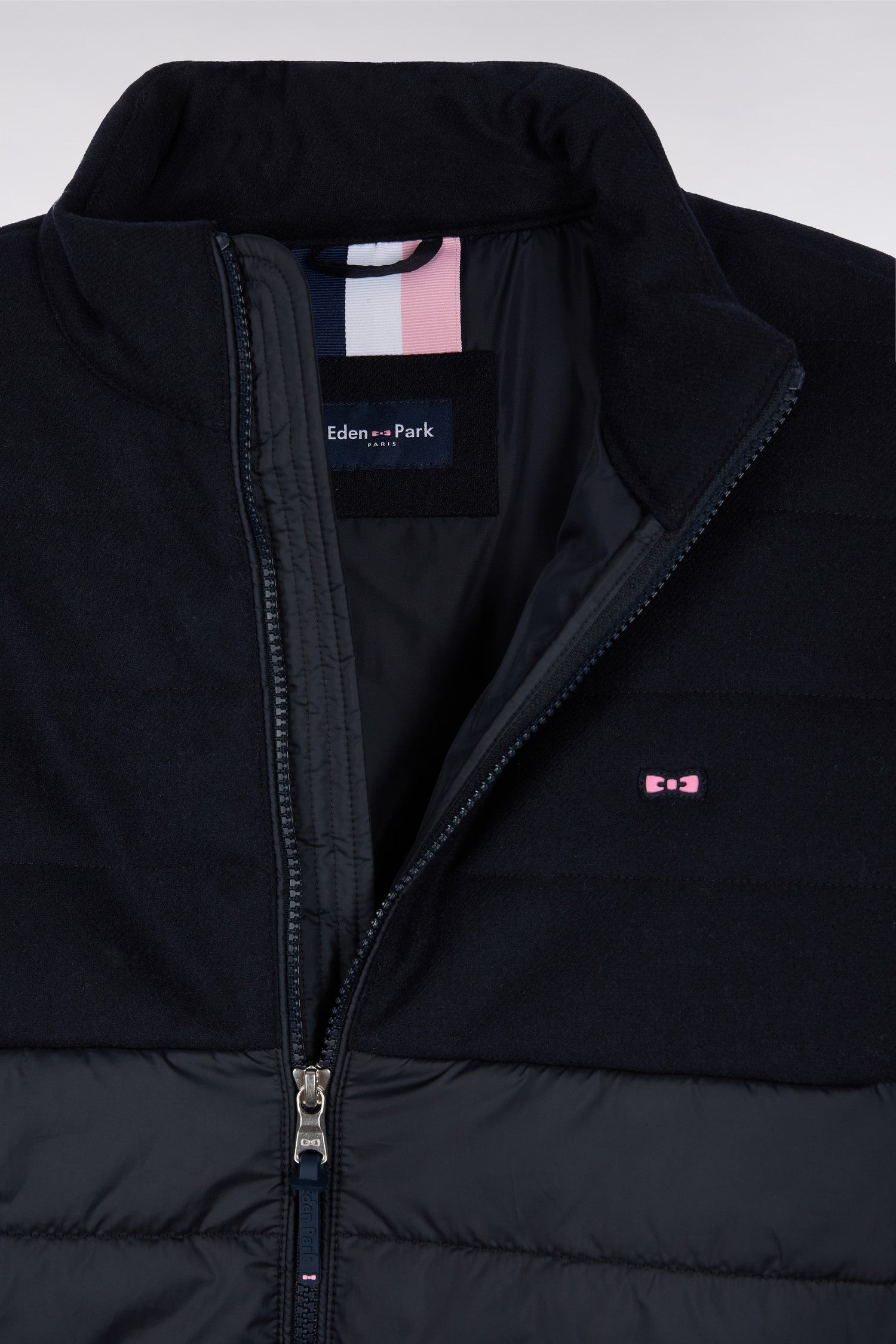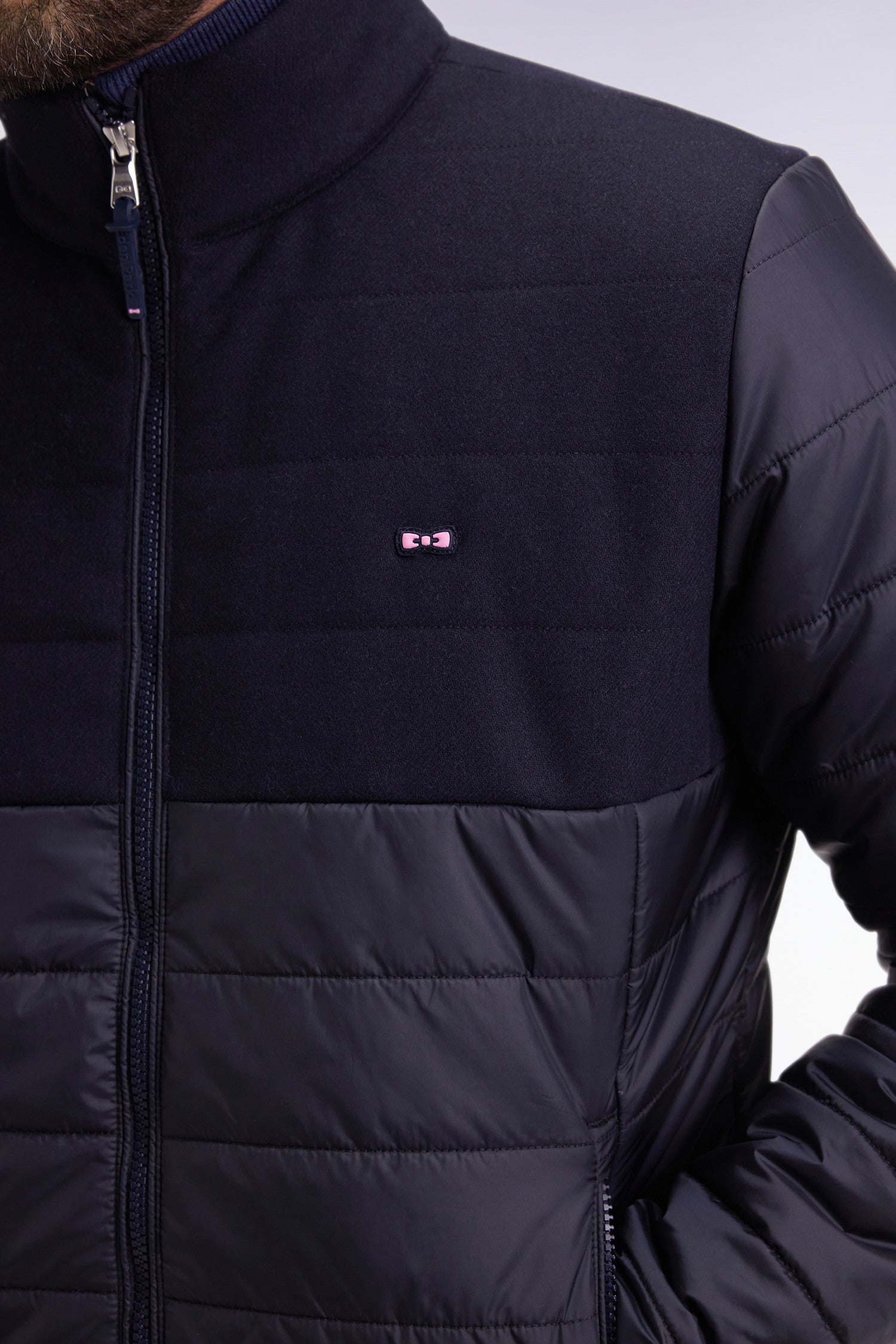 This bimaterial down jacket embodies the urban elegance of our collections. Matte nylon contrasted with water-repellent flannel on the upper body creates a structured, refined silhouette. Careful quilting adds relief, while signature finishes recall Eden Park's sport-chic DNA. A comfortable, protective model, perfect for striding through the city in style. A pure design, supported by excellent cuts and materials