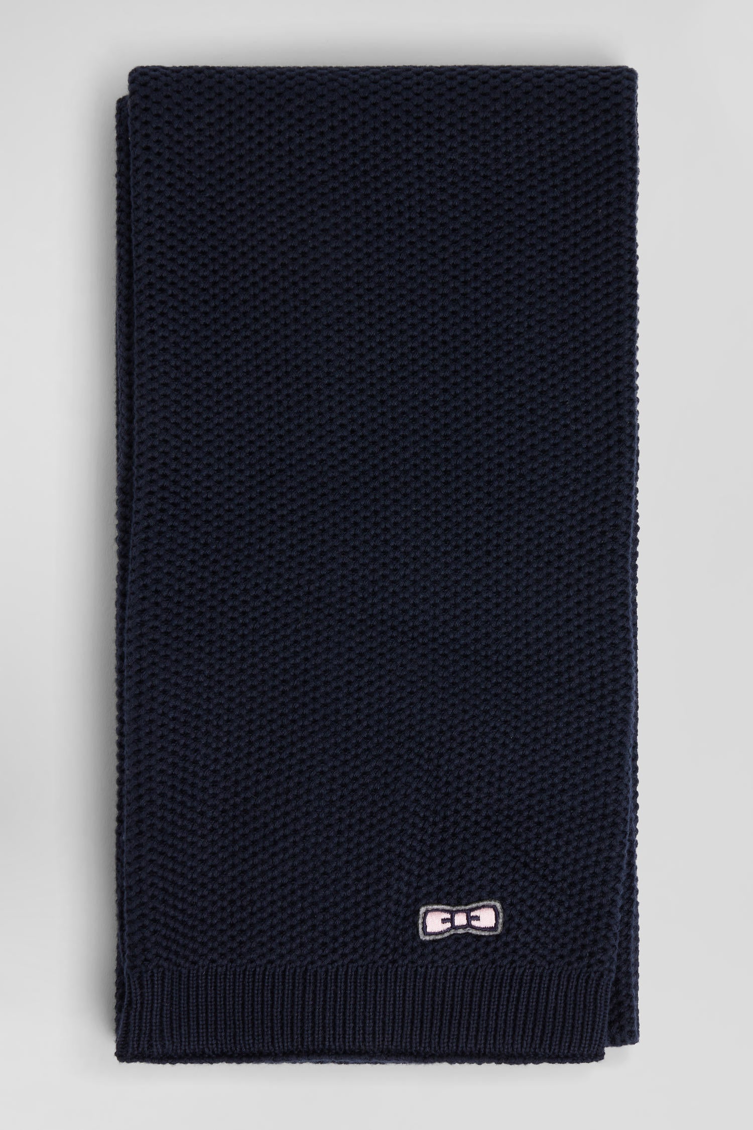 An essential accessory for the autumn-winter season, the plain scarf in soft, comfortable cotton is now available for children. Available in hazelnut or navy blue, this scarf is embellished with our elegant pink bowtie embroidery.