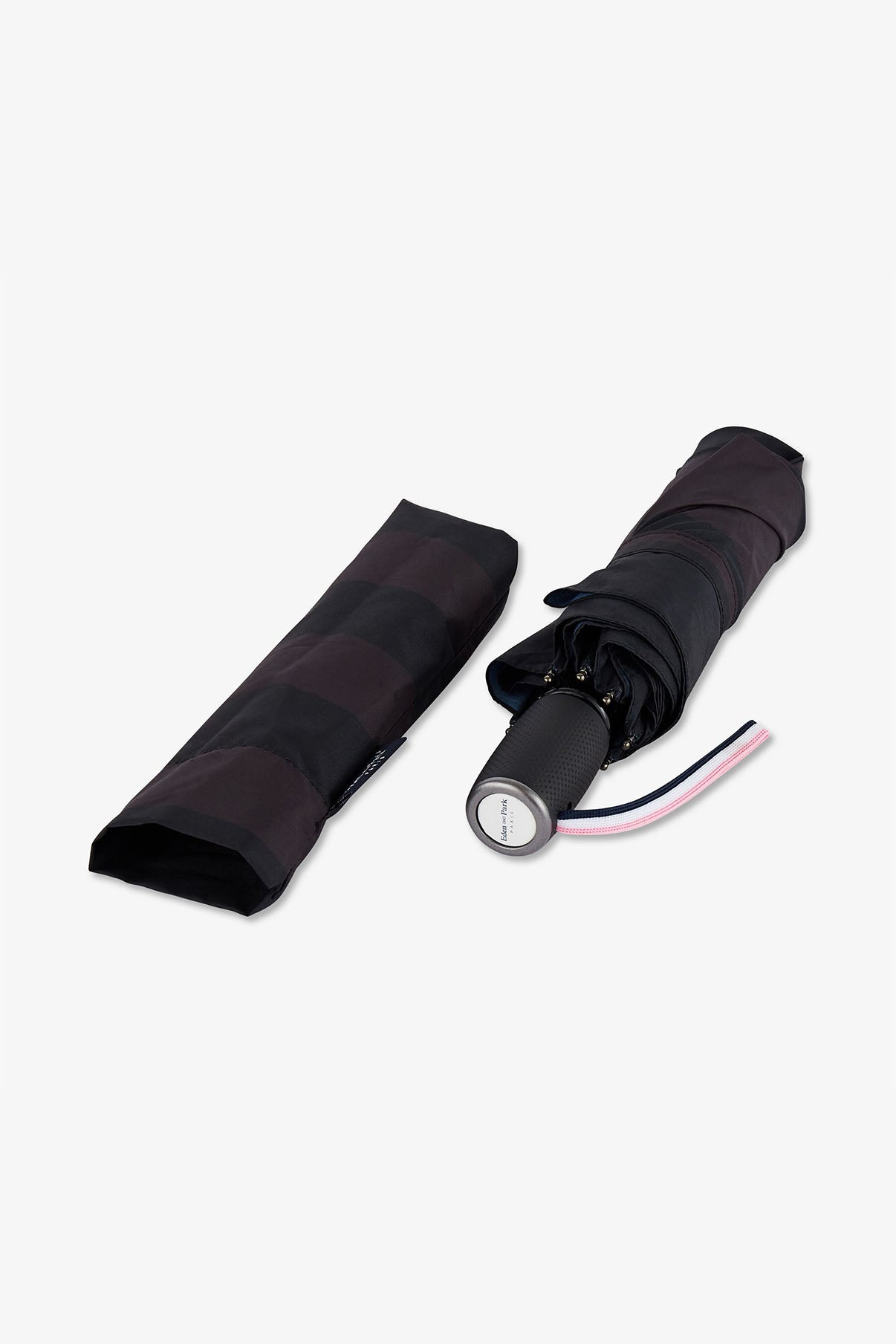 Black folding umbrella with stripes