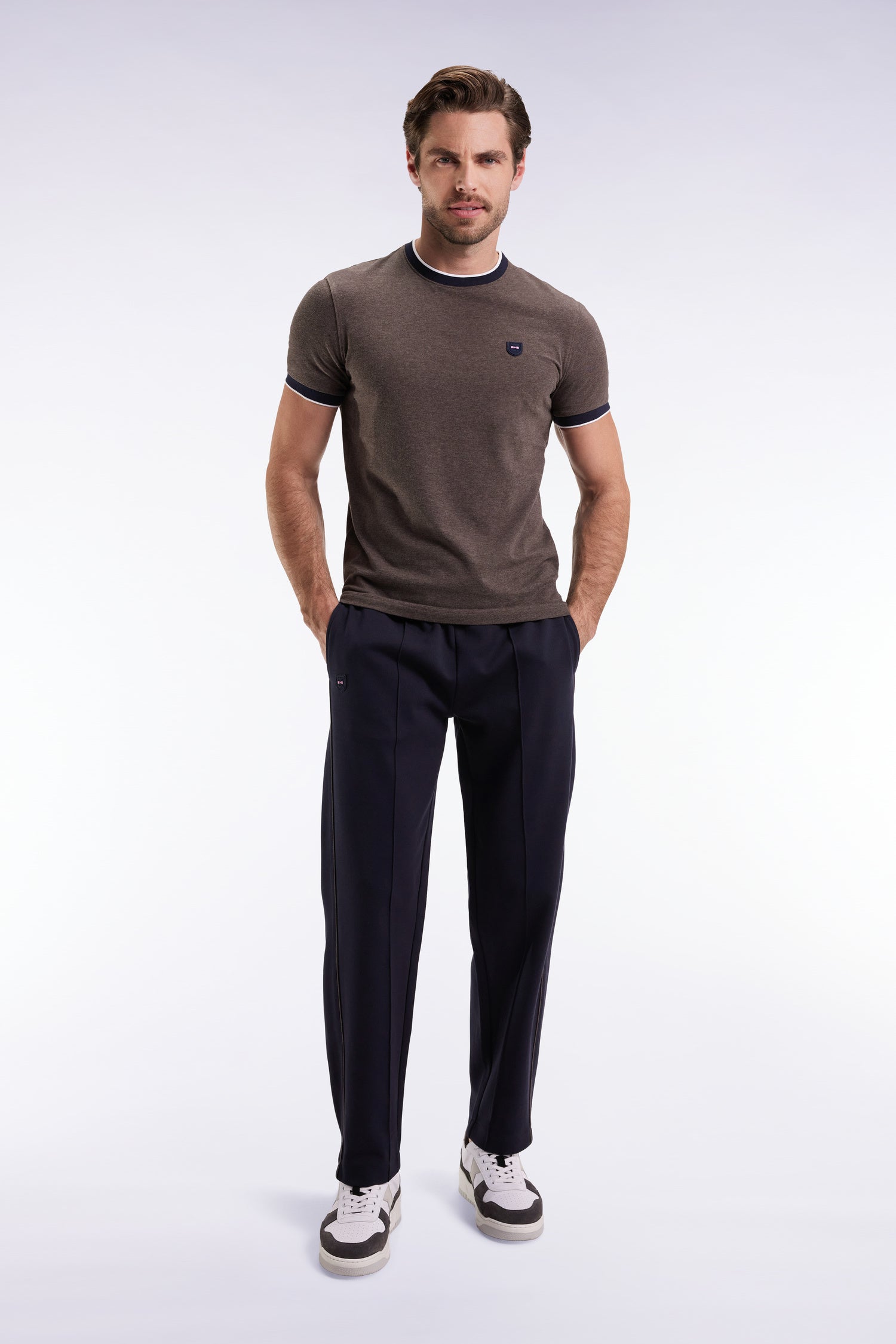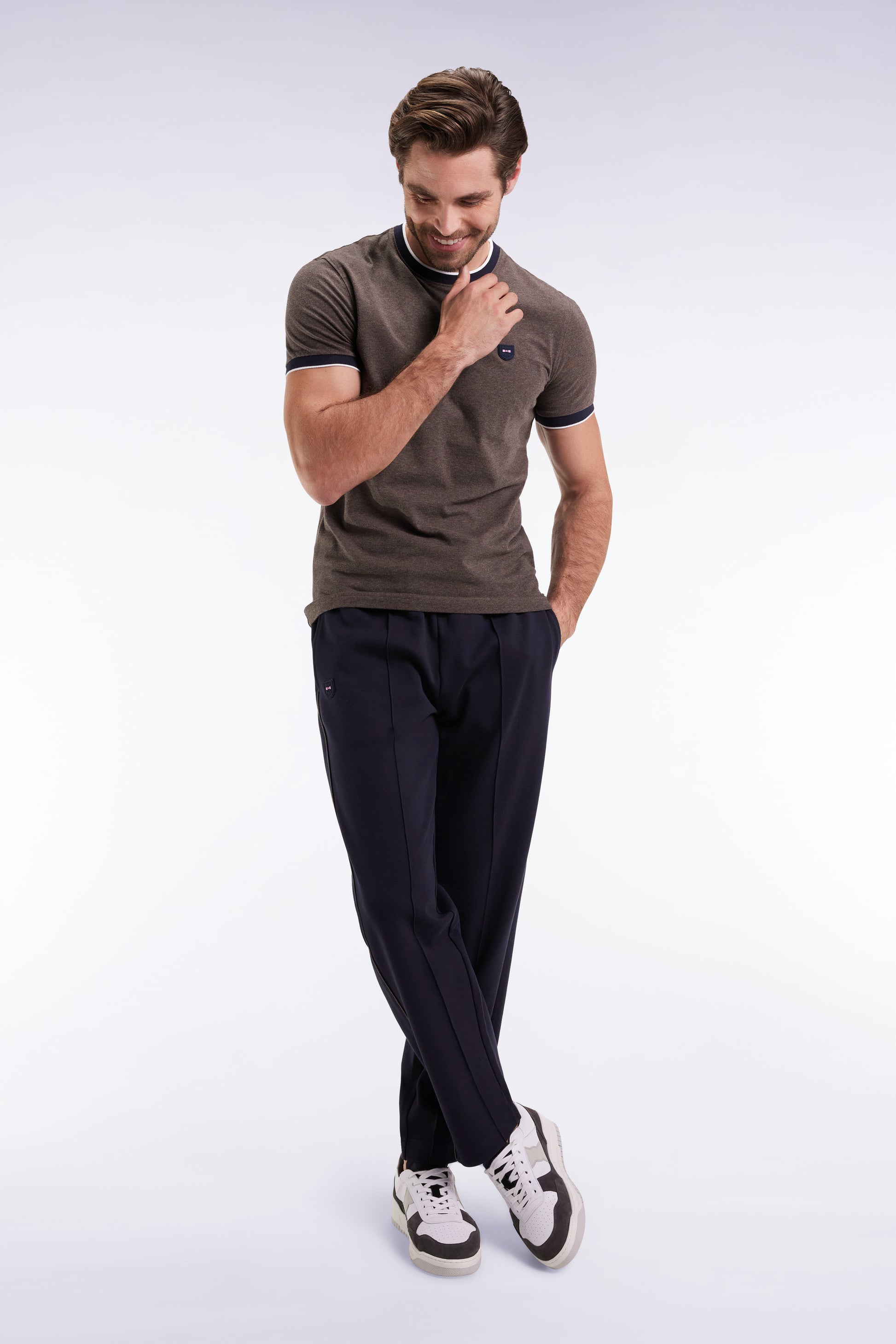 Designed to be worn with the matching zip-up sweatshirt or hoodie, these men's joggers are available in navy or brown. This quintessentially sporty-chic model is highlighted by an Eden Park crest and contrasting piping that elongates the silhouette. The drawstring waist ensures a comfortable fit, while front pleats give structure to the line. Silver metallic finishing and discreet back pockets add a touch of refinement to this model designed to combine allure and casualness in your moments of relaxation.