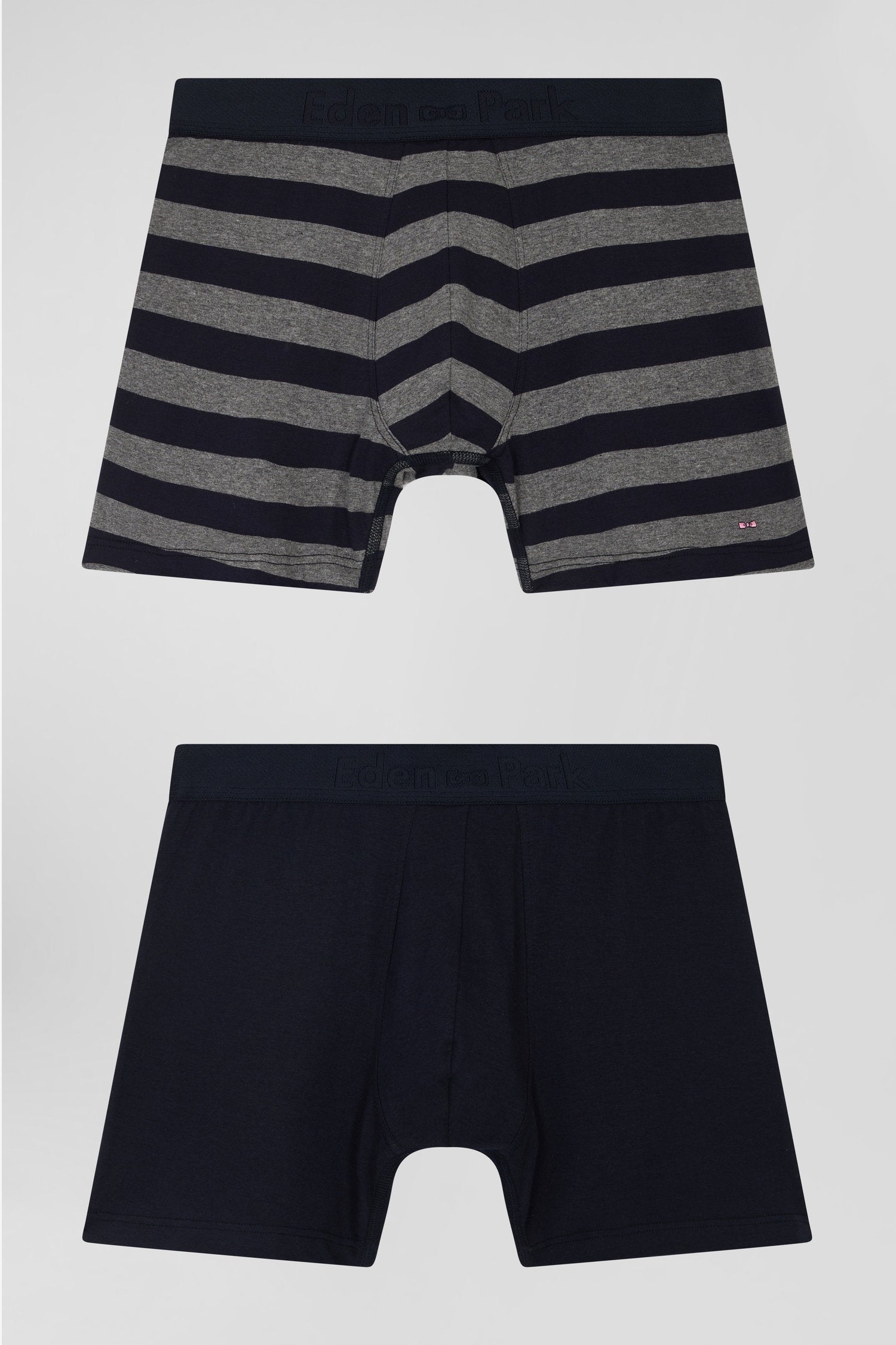 With one pair of plain cotton boxers and the other ringed with Eden Park's iconic stripes, this set of 2 boxers will be the staple of your daily wardrobe. These boxers are made from stretch cotton for comfortable wear and perfect fit. Choose the color of your choice from our range of seasonal colors.