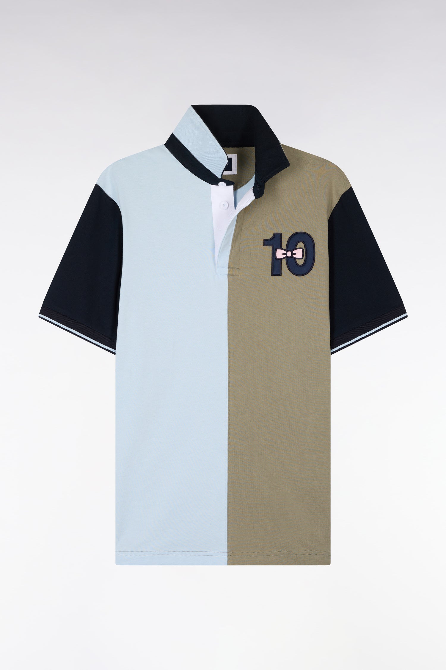 Maillot à manches courtes en coton bicolore kaki et bleu ciel broderie 10 coupe Regular