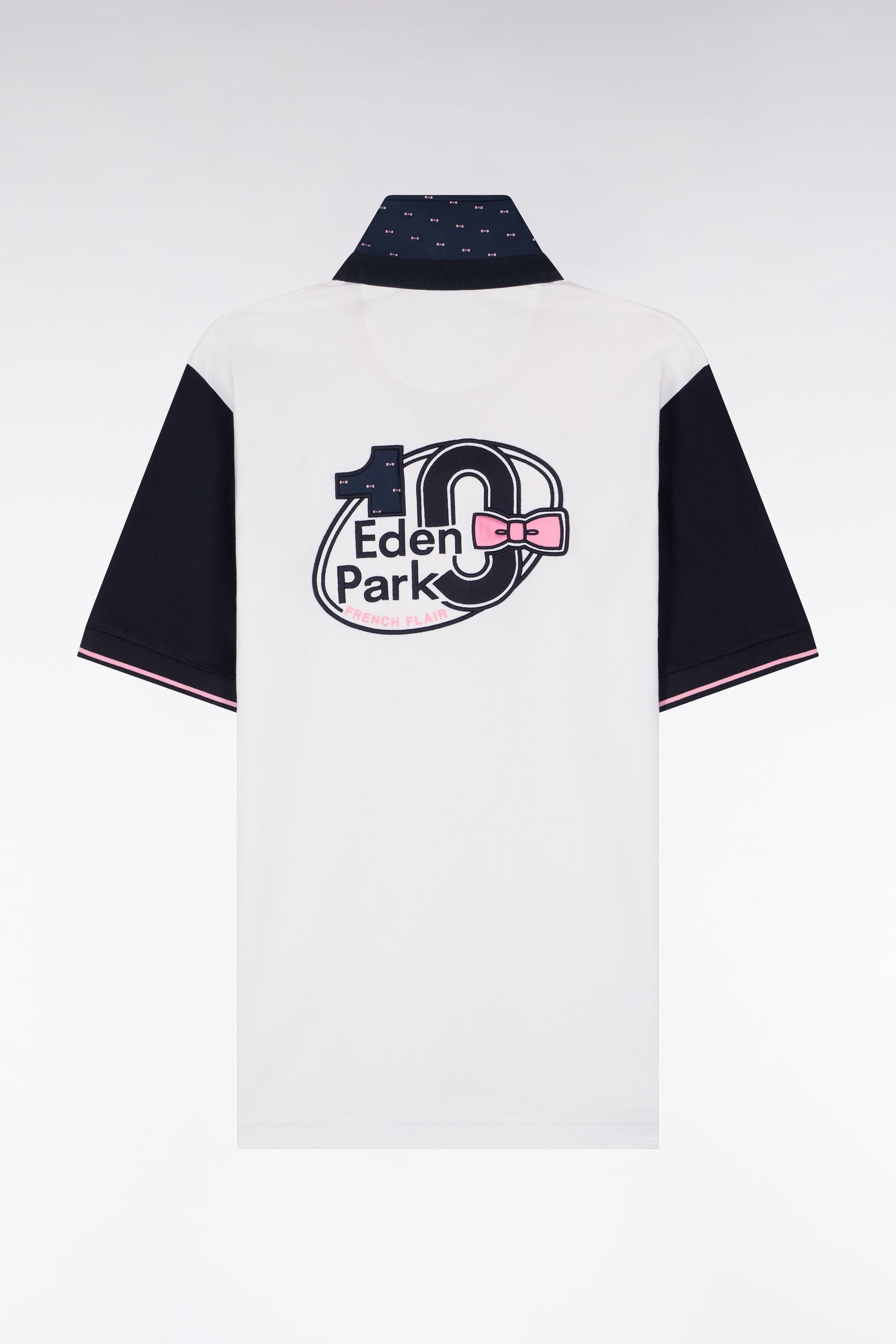 Maillot à manches courtes en coton blanc et marine coupe regular broderie dos