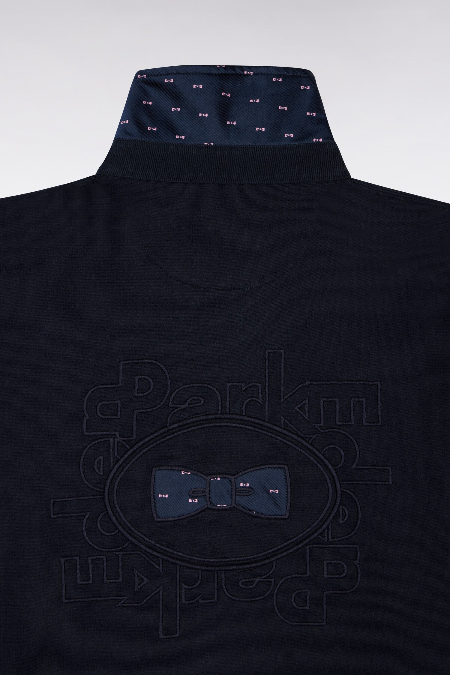 Maillot à manches courtes en coton marine broderie dos coupe regular
