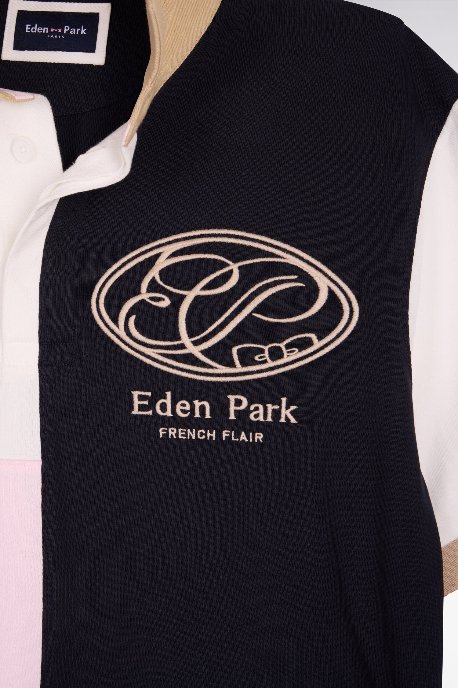 Ces maillots colorblock associent les coloris Eden Park à des notes pastel pour un style doux et graphique. Le col maillot contrasté, rappelé par les bordures de manches tricotées, les boutons ovales inspiré des ballons de rugby et la broderie poitrine d'inspiration sportive légèrement vintage confirment son identité sport chic. Une pièce originale, idéale pour dynamiser un vestiaire masculin printanier.