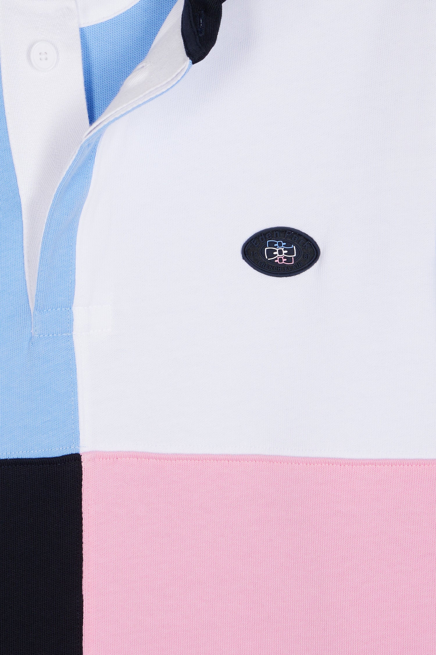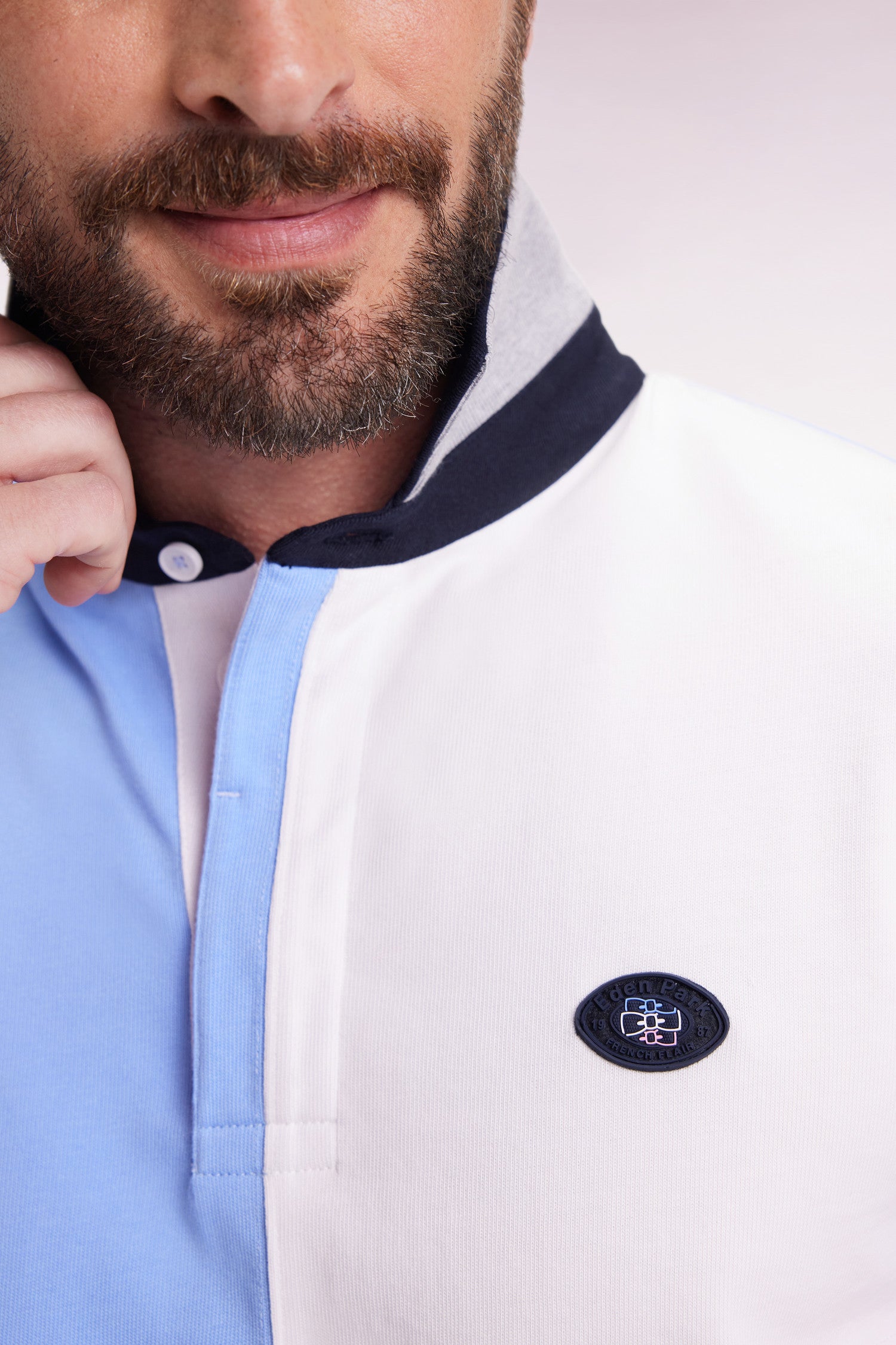 Crafted in thick cotton jersey ideal for fall and winter, this long-sleeved jersey offers exceptional softness and impeccable fit. Its contrasting gray twill collar with ribbed lapels adds a discreet touch of elegance. Ideal for sporty-chic everyday style, it features contrasting colored dials in Eden Park's signature style.