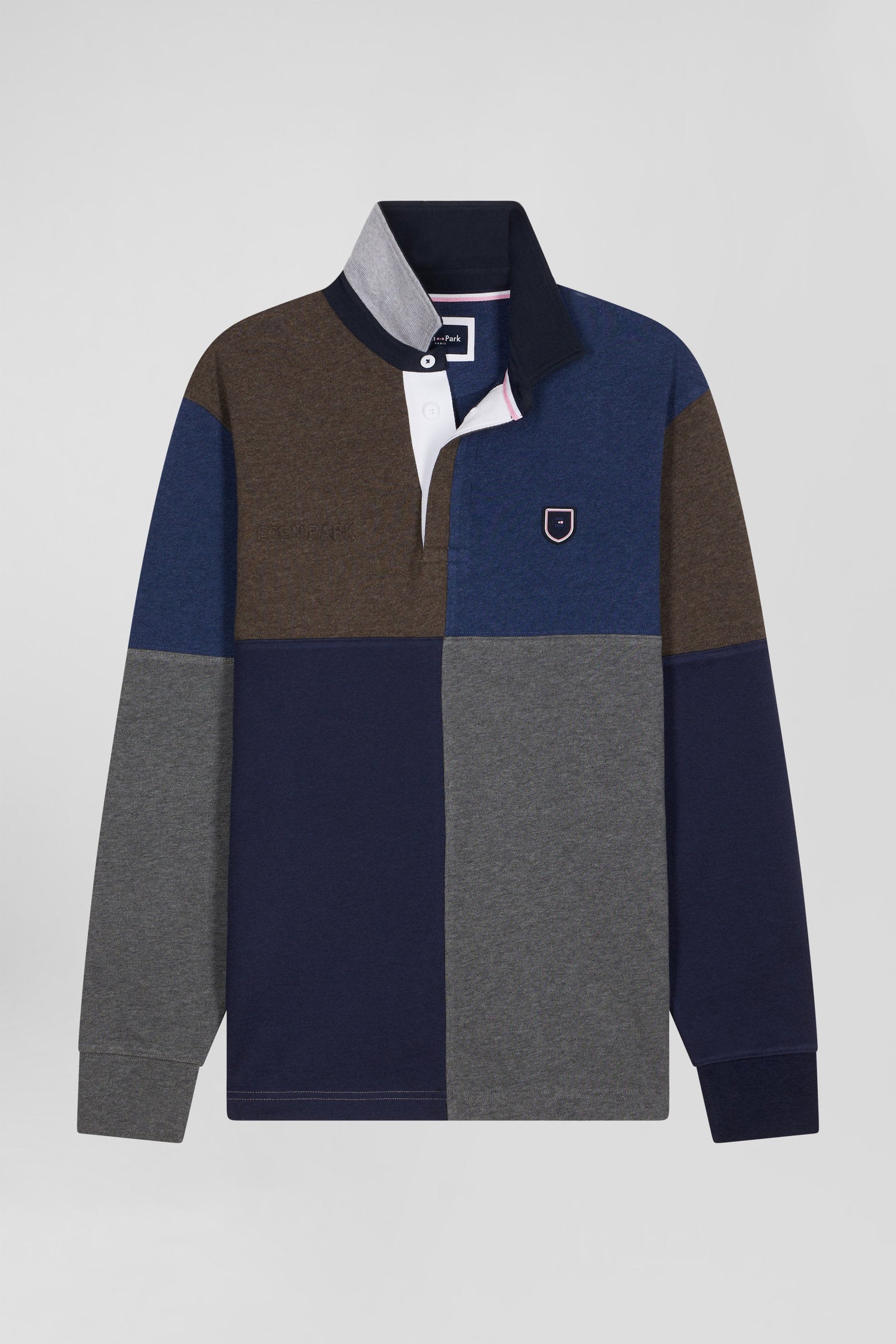 - Button placket with oval rugby buttons