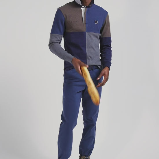 Discover our colorblock cut and sew jersey, a daring piece in which four colors come together in harmonious dial stitching. Available in two shades, light blue and dark mottled blue, this long-sleeved, straight-cut jersey offers a dynamic, modern design, ideal for an original, contemporary look.