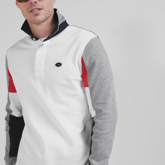 Regular white long-sleeved cotton rugby shirt