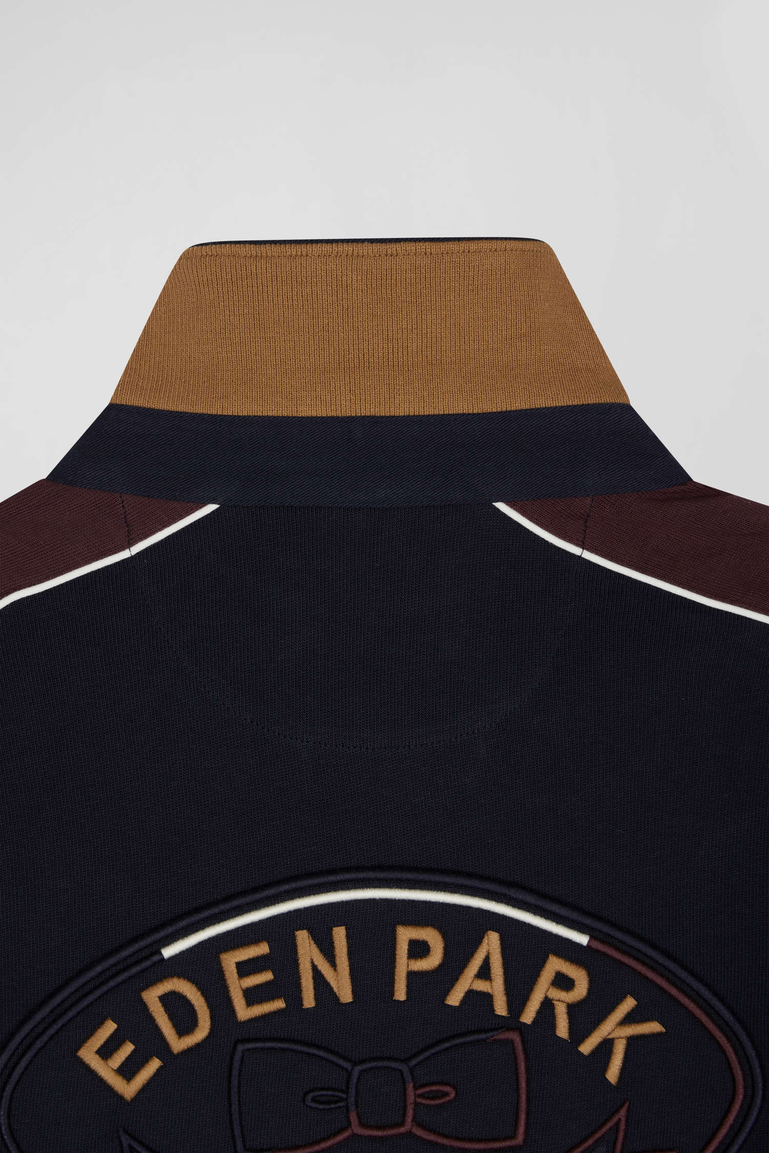 • Embroidered tricolour bow tie emblem