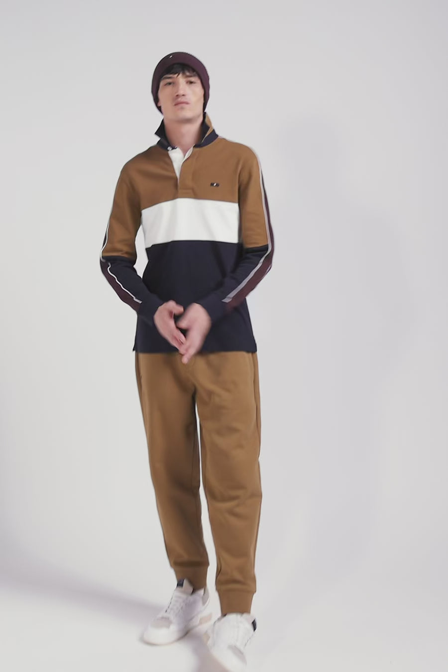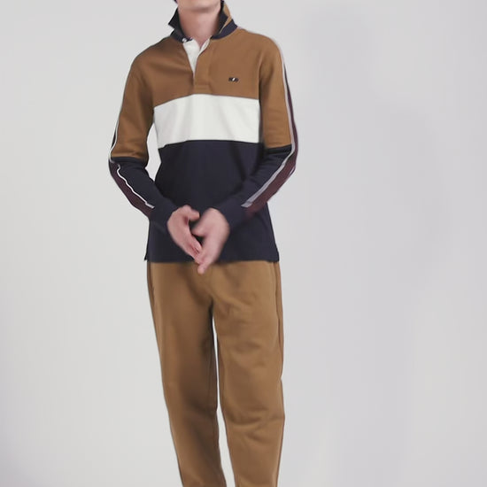 This men's long-sleeved jersey illustrates the sporty elegance of our House with a modern twist. The comfortable Regular fit is enhanced by rugby-inspired embroidery on the back and refined details, including piping along the armhole. Perfect for any wardrobe.