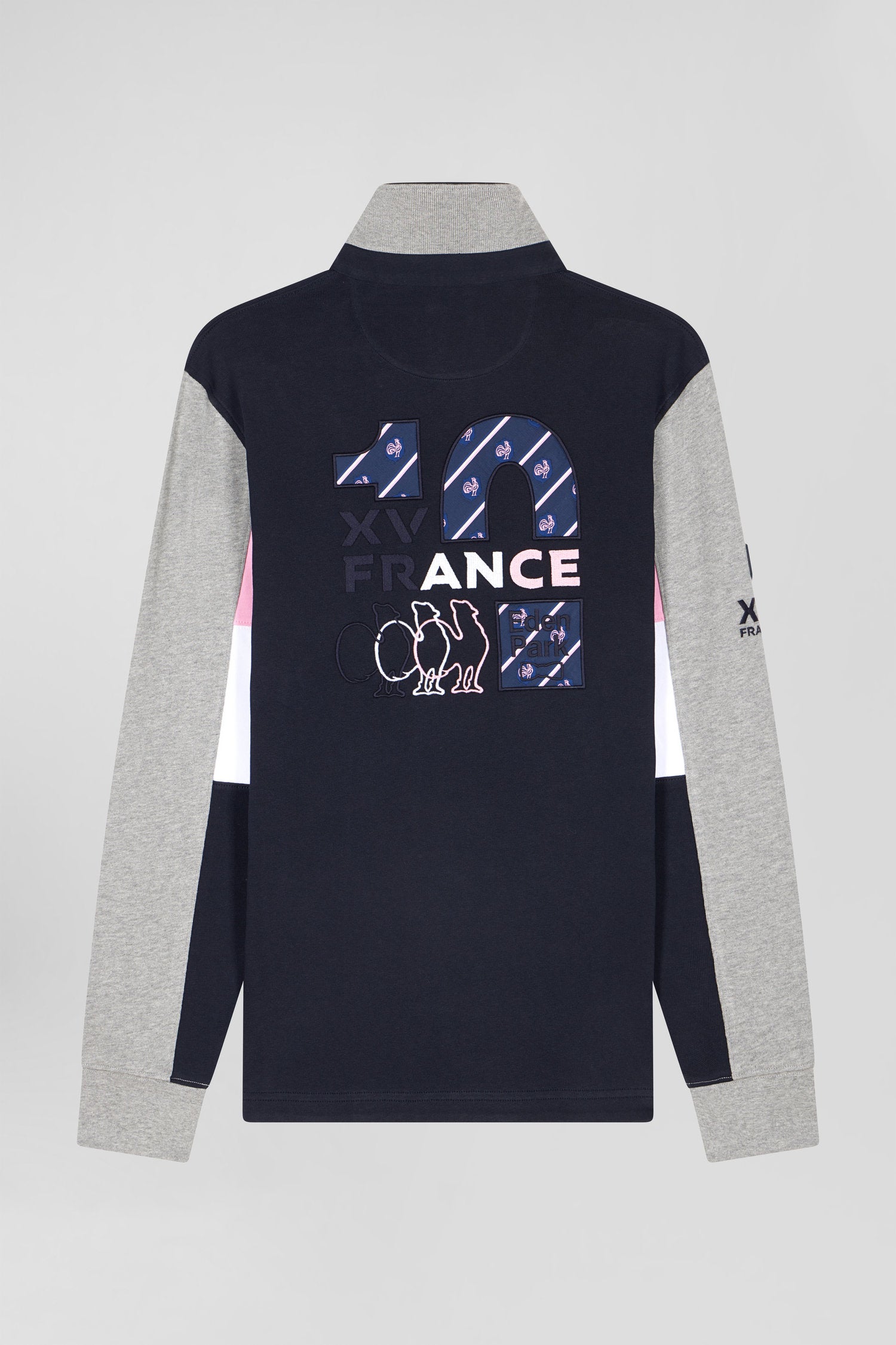 Regular navy blue XV de France long-sleeved cotton rugby shirt
