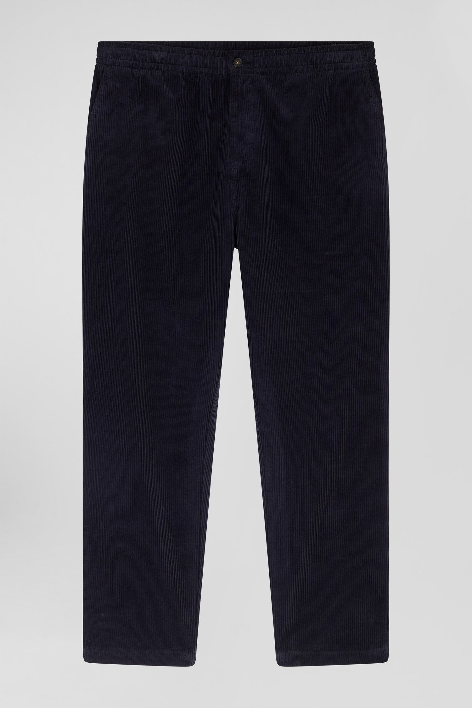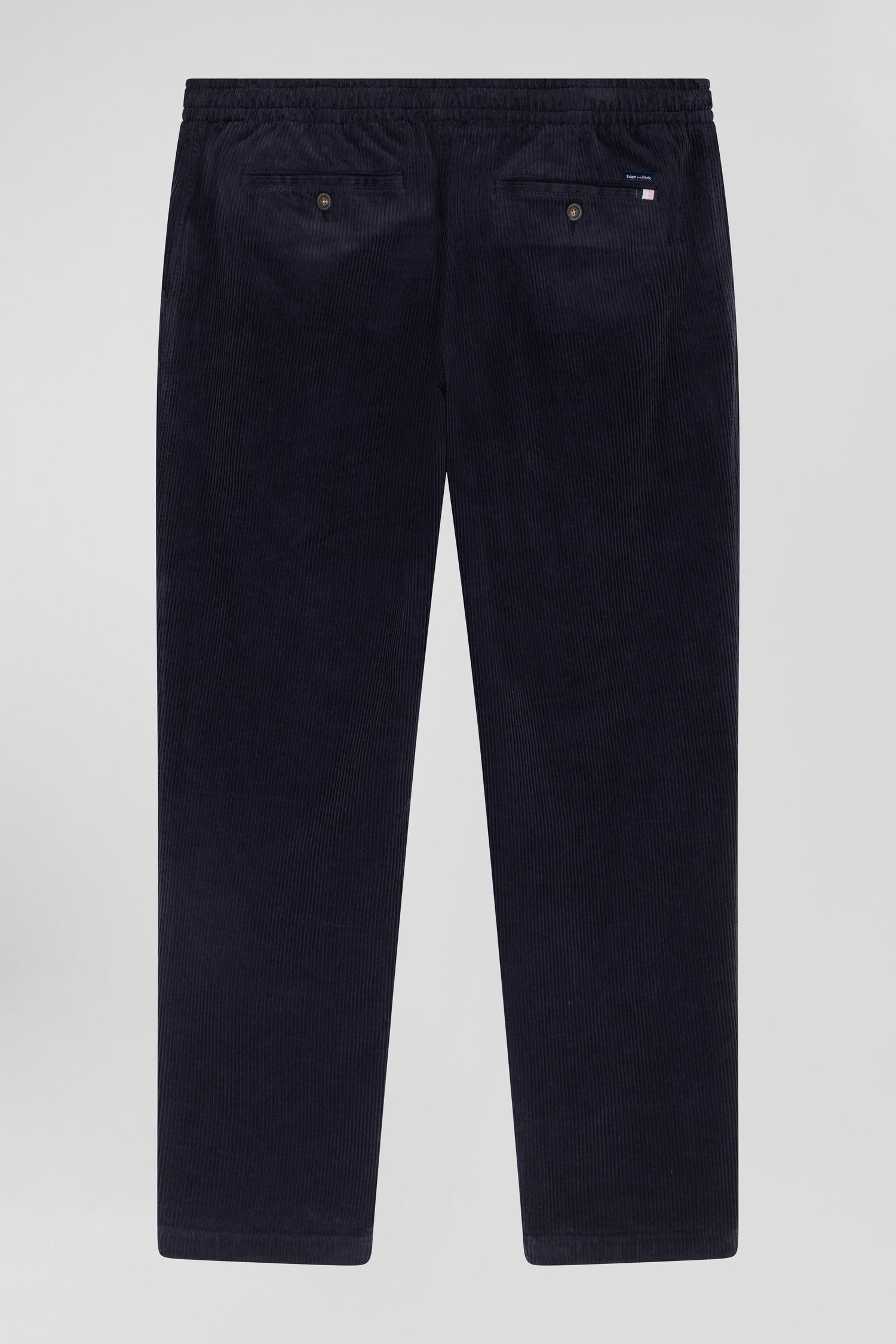 Our stretch cotton men's pants feature an elastic waistband for a perfect fit and added comfort. This model features a piped back pocket embellished with our signature tricolored ribbon and Italian pockets for added ease. The modern, slightly carrot cut offers a contemporary, comfortable silhouette. Available in a range of colors, these timeless men's pants are the ideal combination of functionality and style.