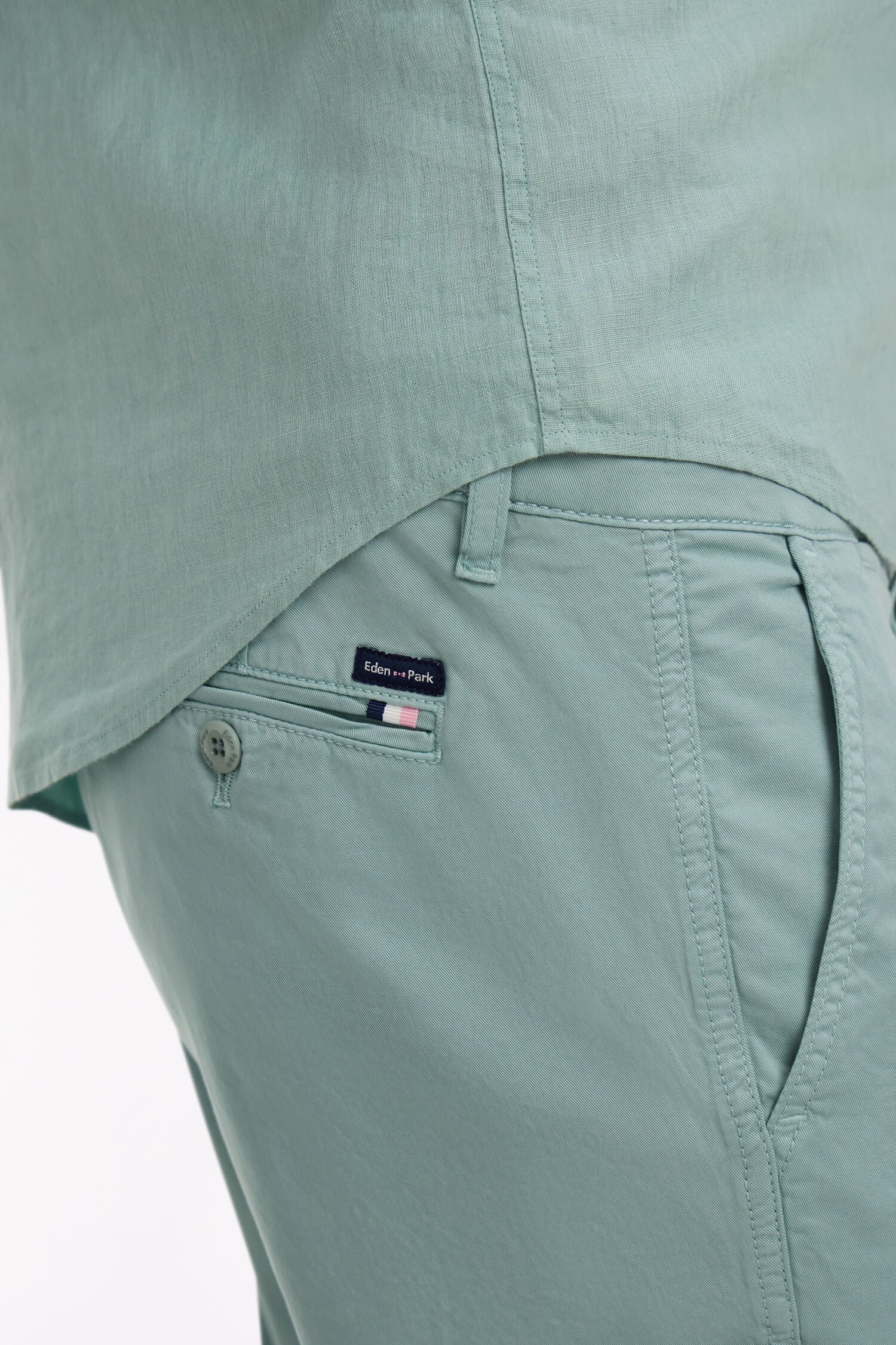 Ce chino pour homme en gabardine de coton stretch allie confort et style. Il comporte des poches latérales italiennes et des poches dos double passepoil, ainsi qu'un ruban ottoman tricolore sur la poche arrière. Disponible en plusieurs coloris intemporels et estivaux, ce pantalon chino est proposé dans une coupe regular droite pour une allure décontractée et plus d'aisance.