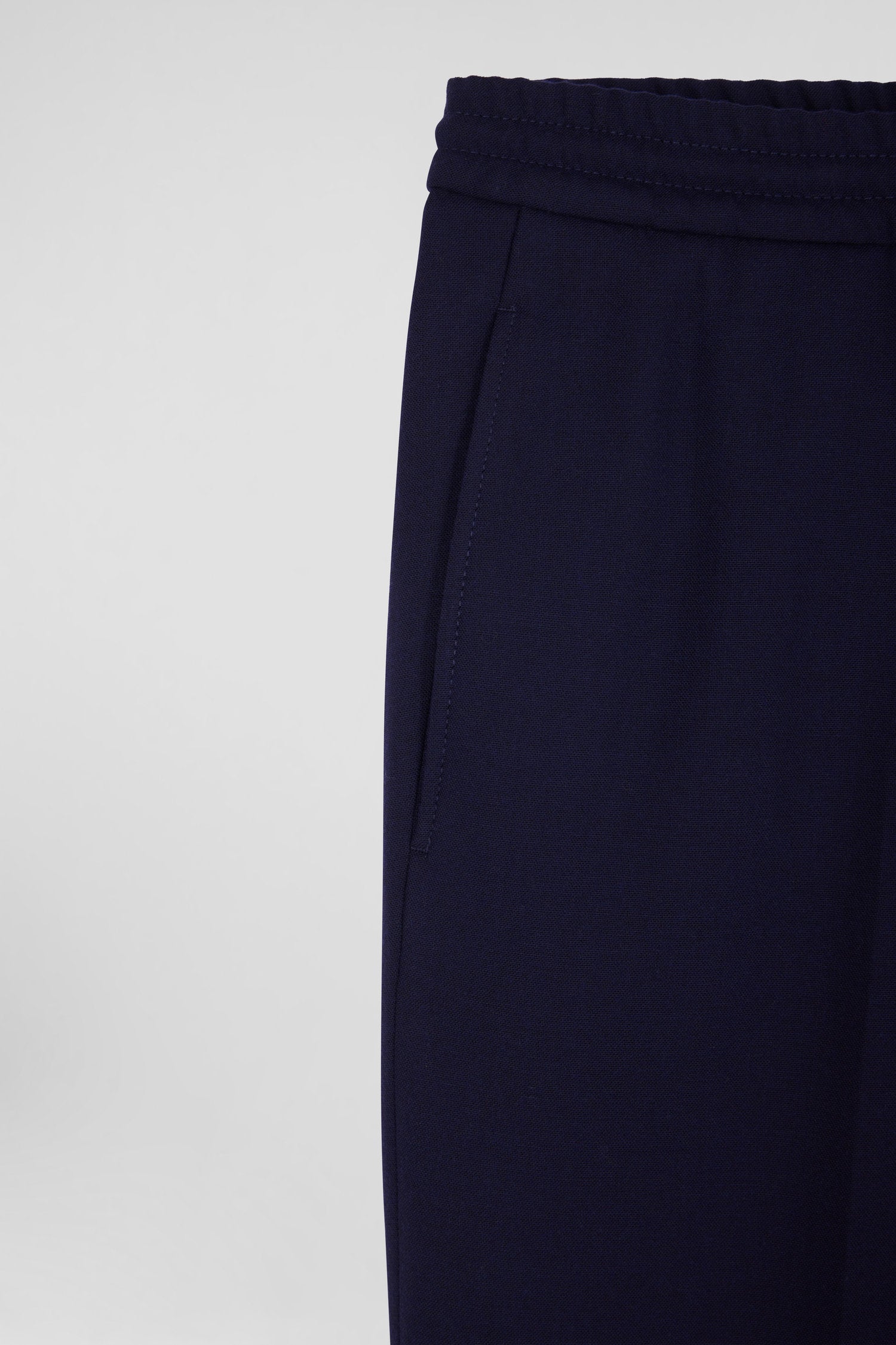 Our navy wool-blend pants in a slightly carrot cut are designed to combine elegance and comfort. With an elasticated waistband, neat finishes such as back welt pockets and a branded label, these chic yet casual men's pants are a fall-winter essential.