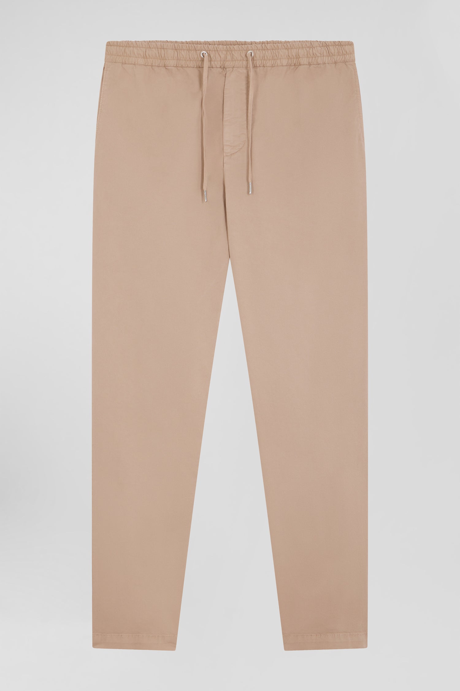 Modern beige stretch cotton elastic waist trousers
