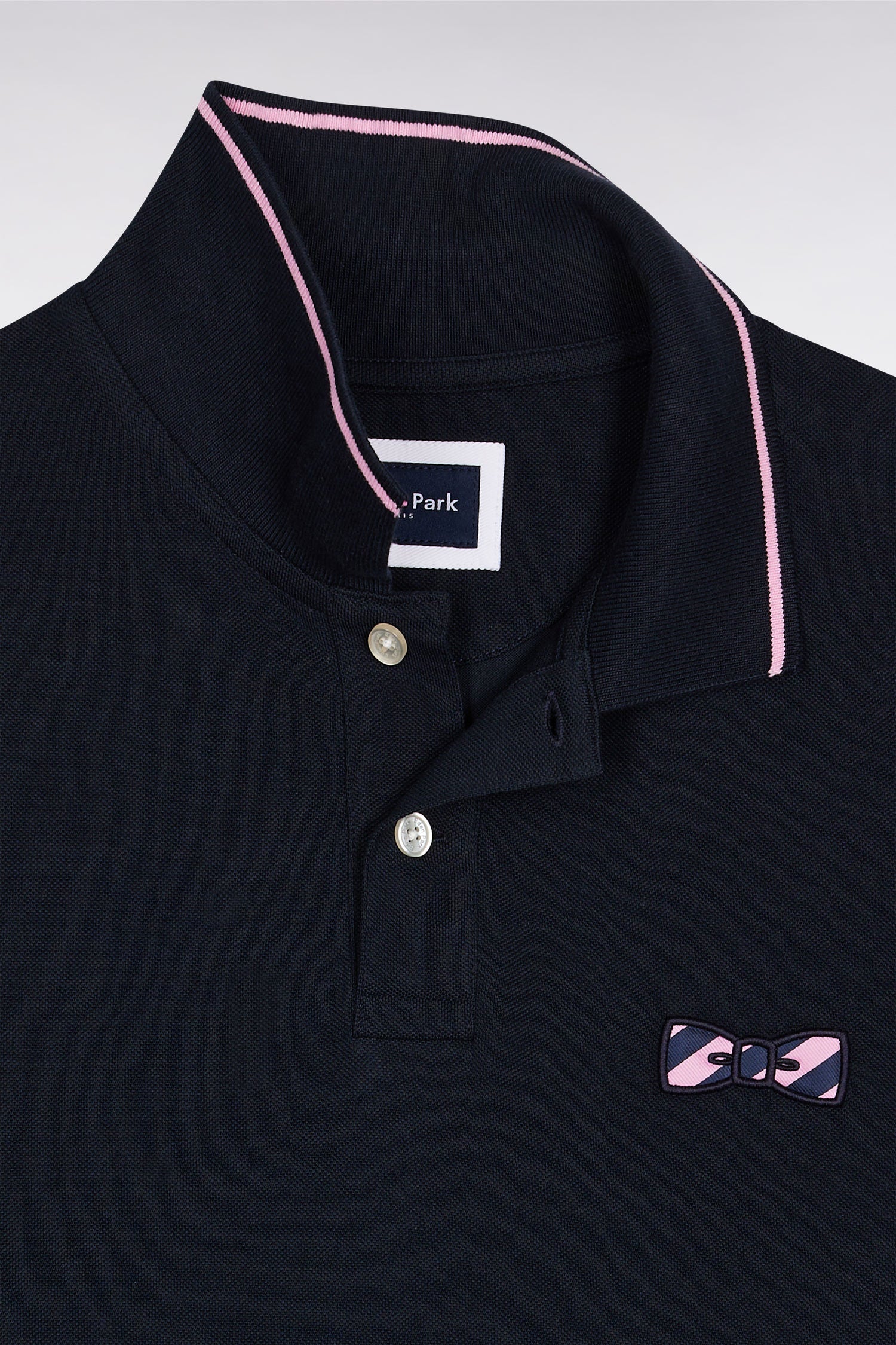 Short-sleeved polo shirt in navy cotton with hooped embroidery