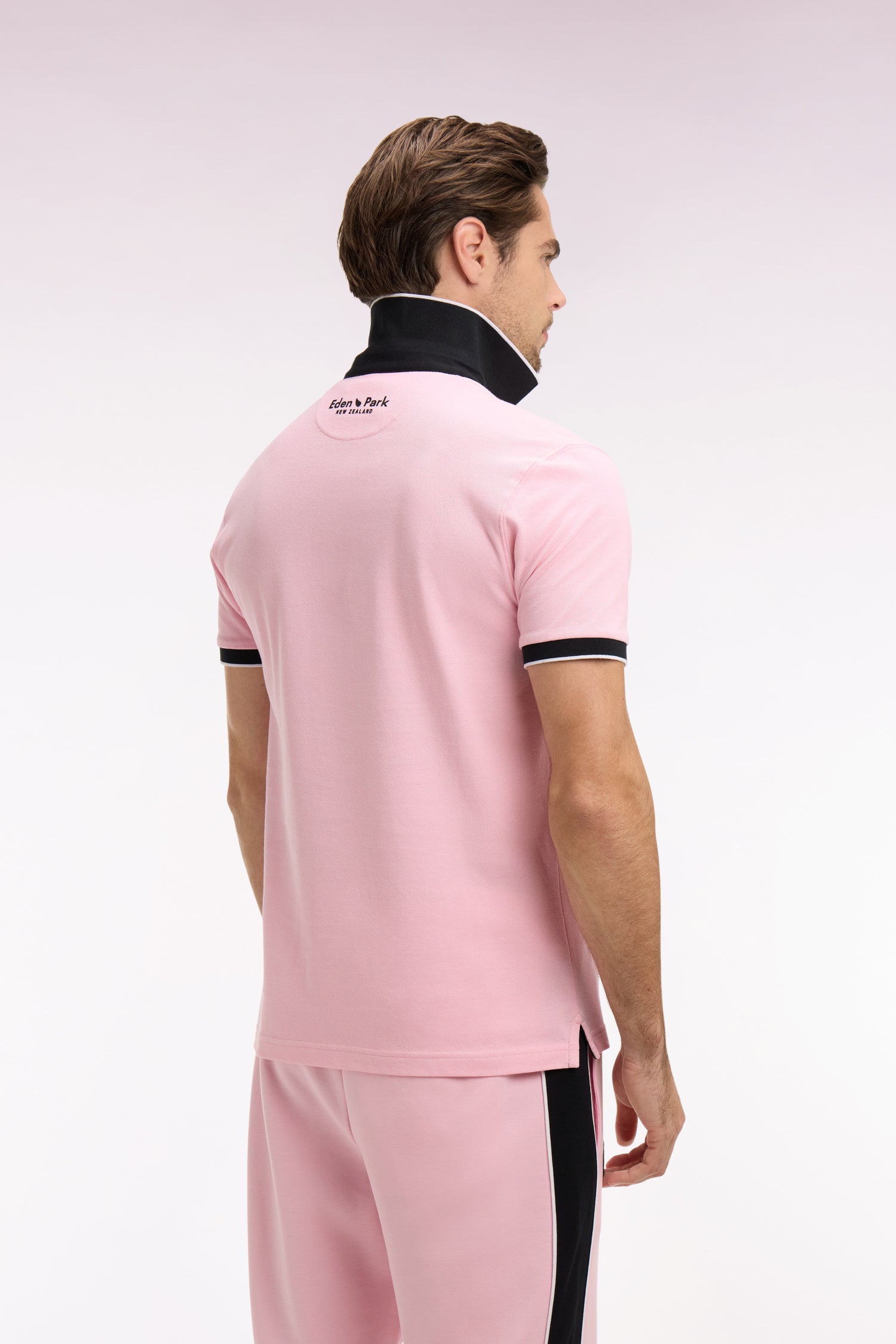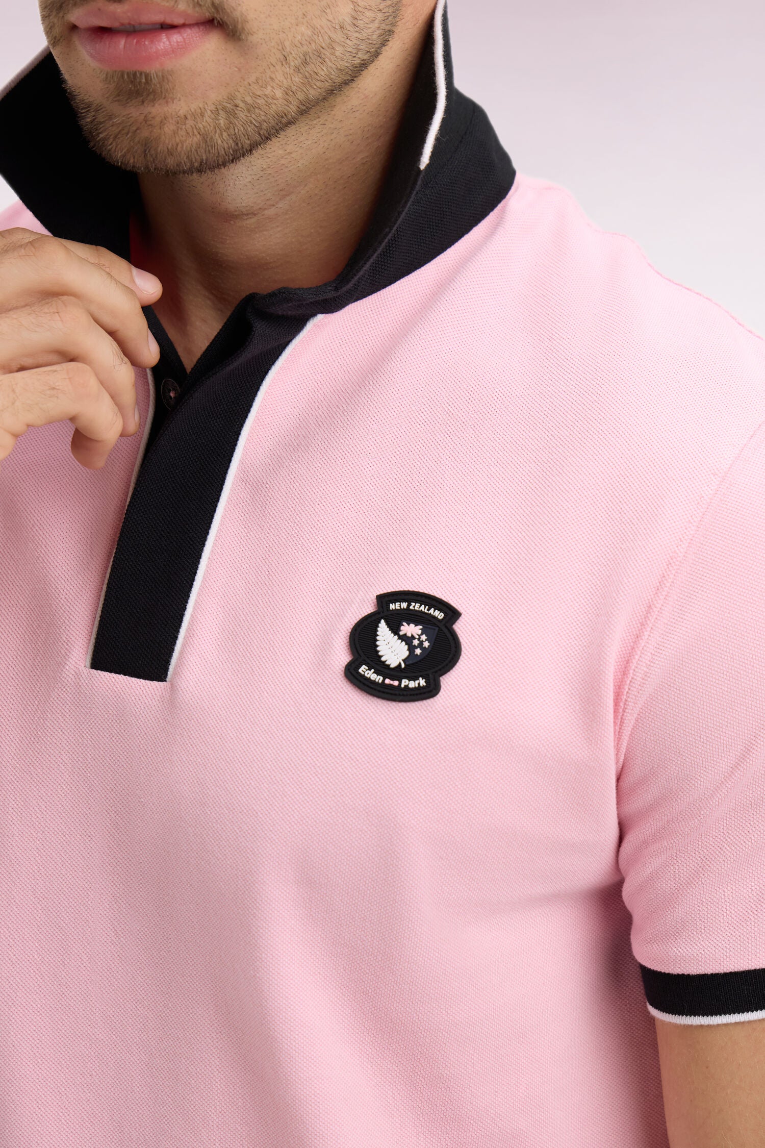 Ce polo de notre capsule Nouvelle vous est proposé en noir, rose ou blanc, et toujours doté d'une patte de boutonnage et bordures de manches noirs souligné d'une rayure contrastée. Ce modèle collector se distingue par son écusson New Zealand brodé sur la poitrine tandis qu'au dos de sa Demi-lune se retrouve la signature Eden Park.