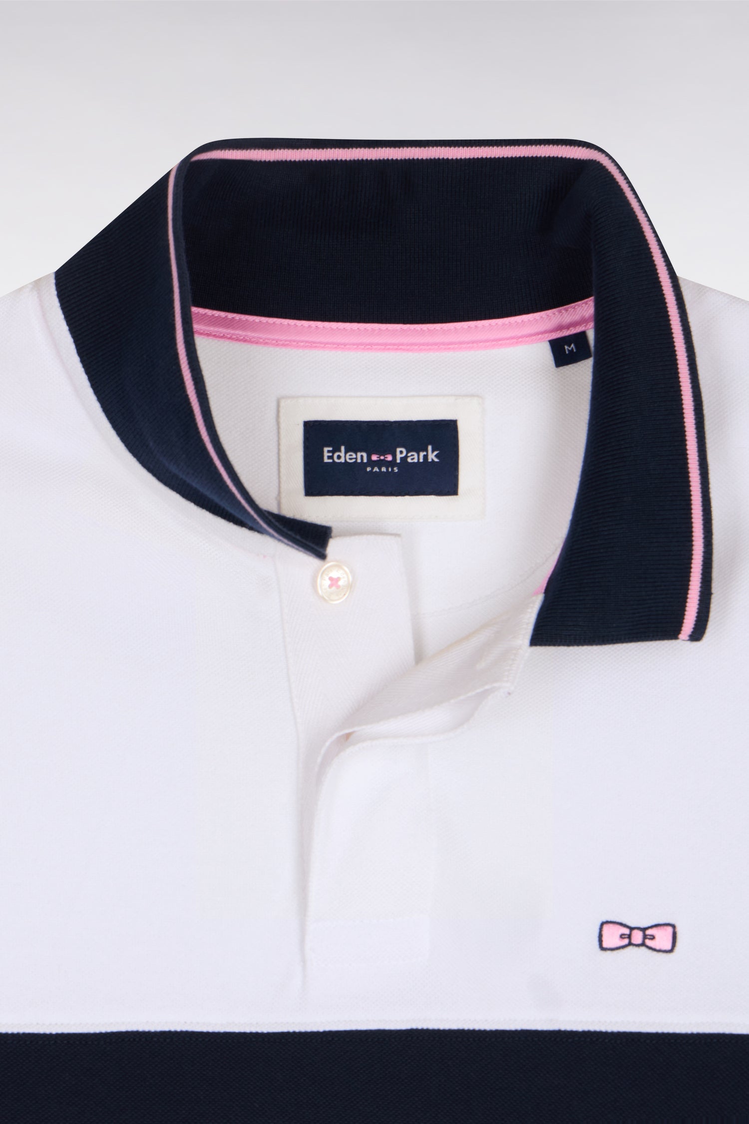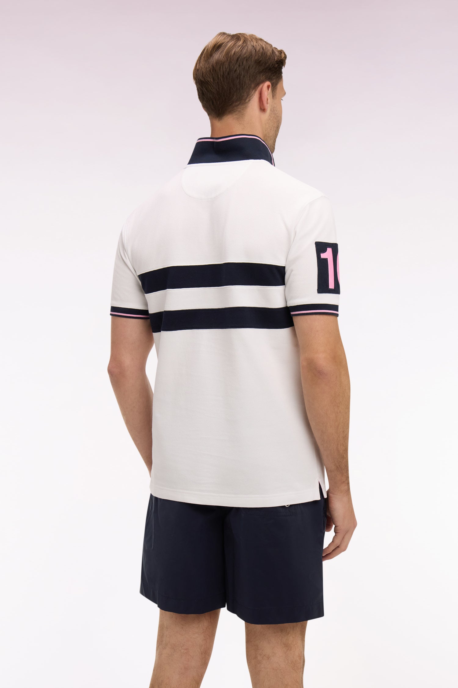 Polo à manches courtes en piqué coton blanc à rayures coupé cousu