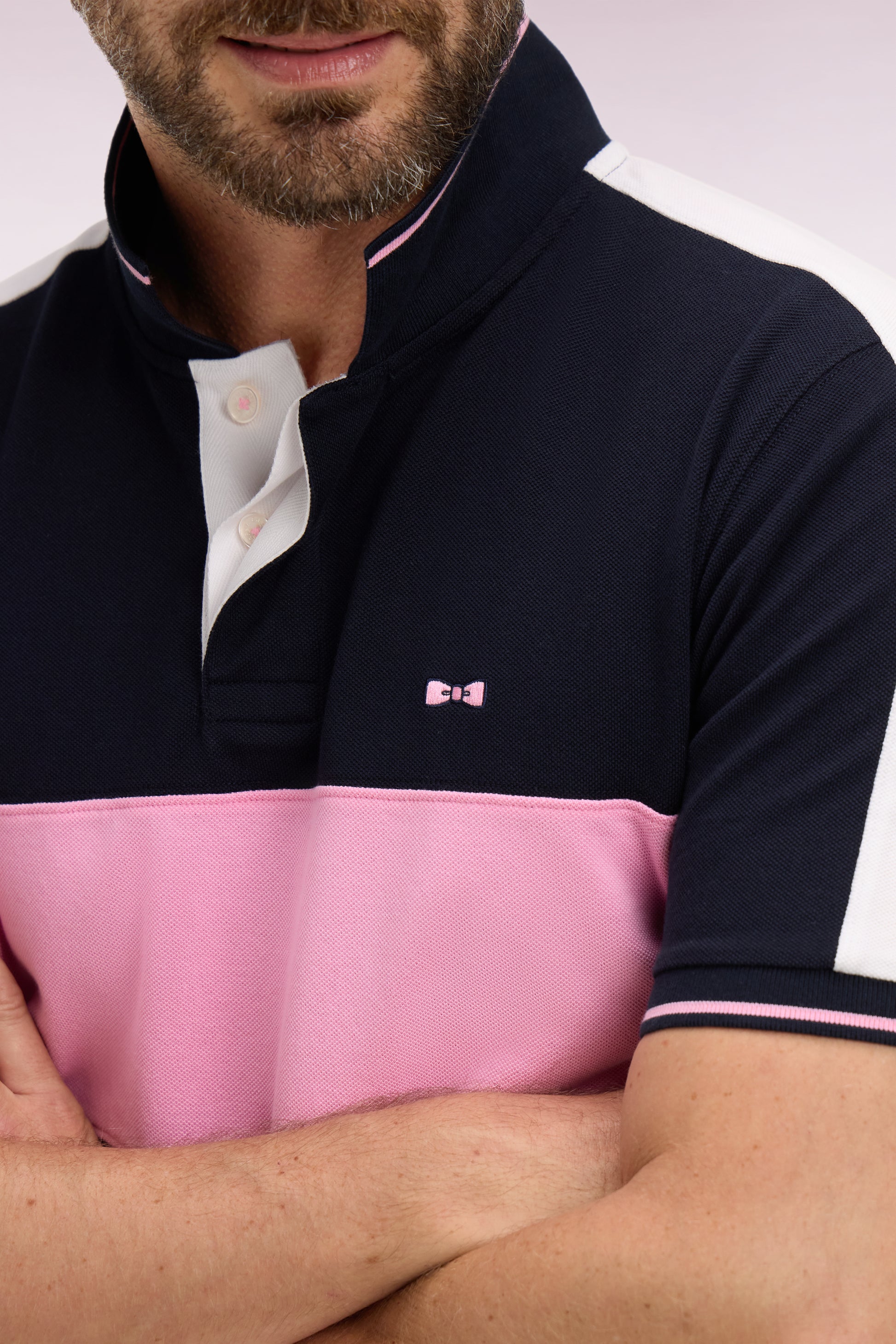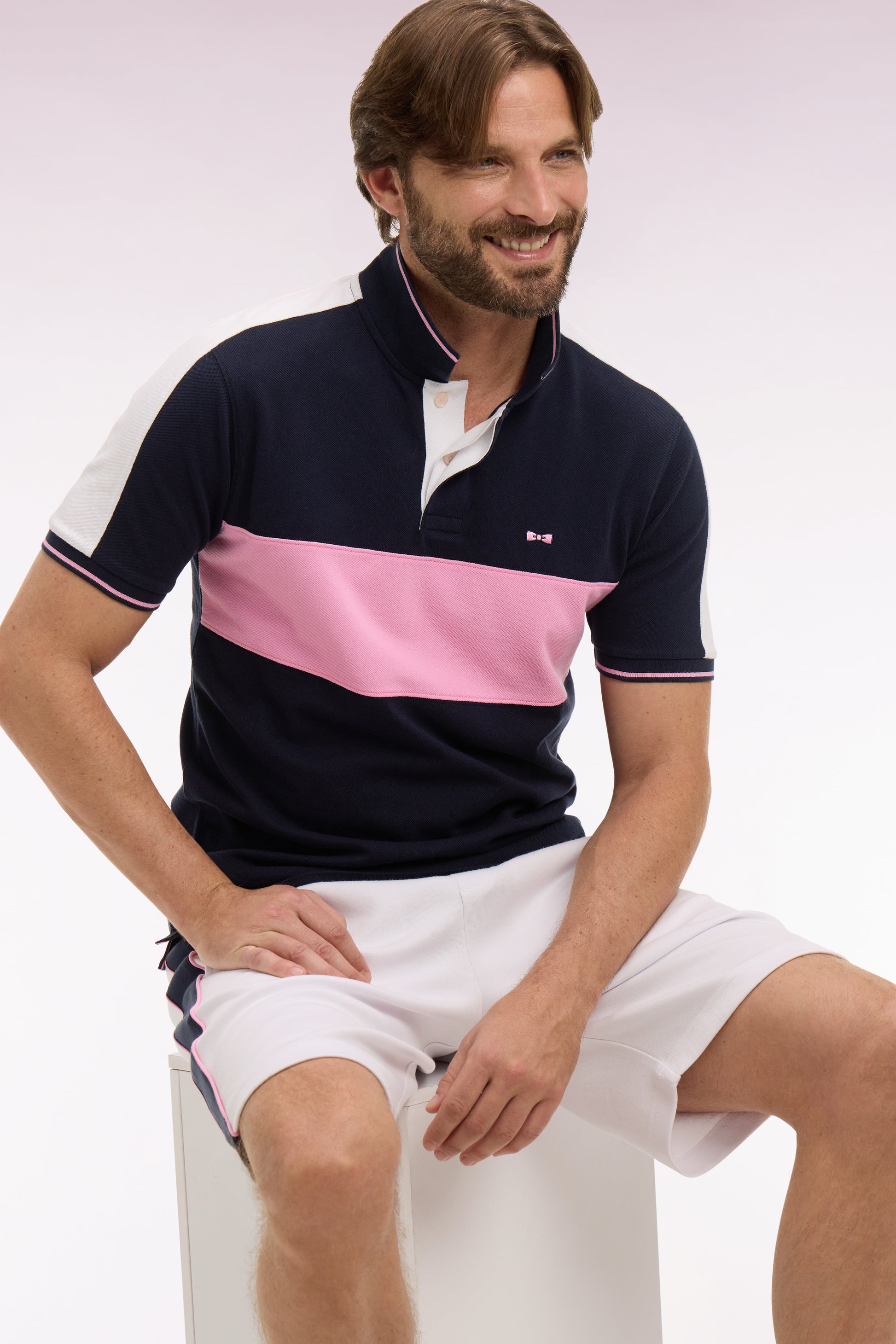 Ce polo en piqué de coton affirme un style sport chic grâce à sa large découpe horizontale sur la poitrine et sur la ligne d'épaule. Le col polo et les bordures de manches en bords-côtes rayés accentuent une allure dynamique qui célèbre l’héritage rugby de la Maison. Un modèle graphique et tendance pour l'homme moderne.